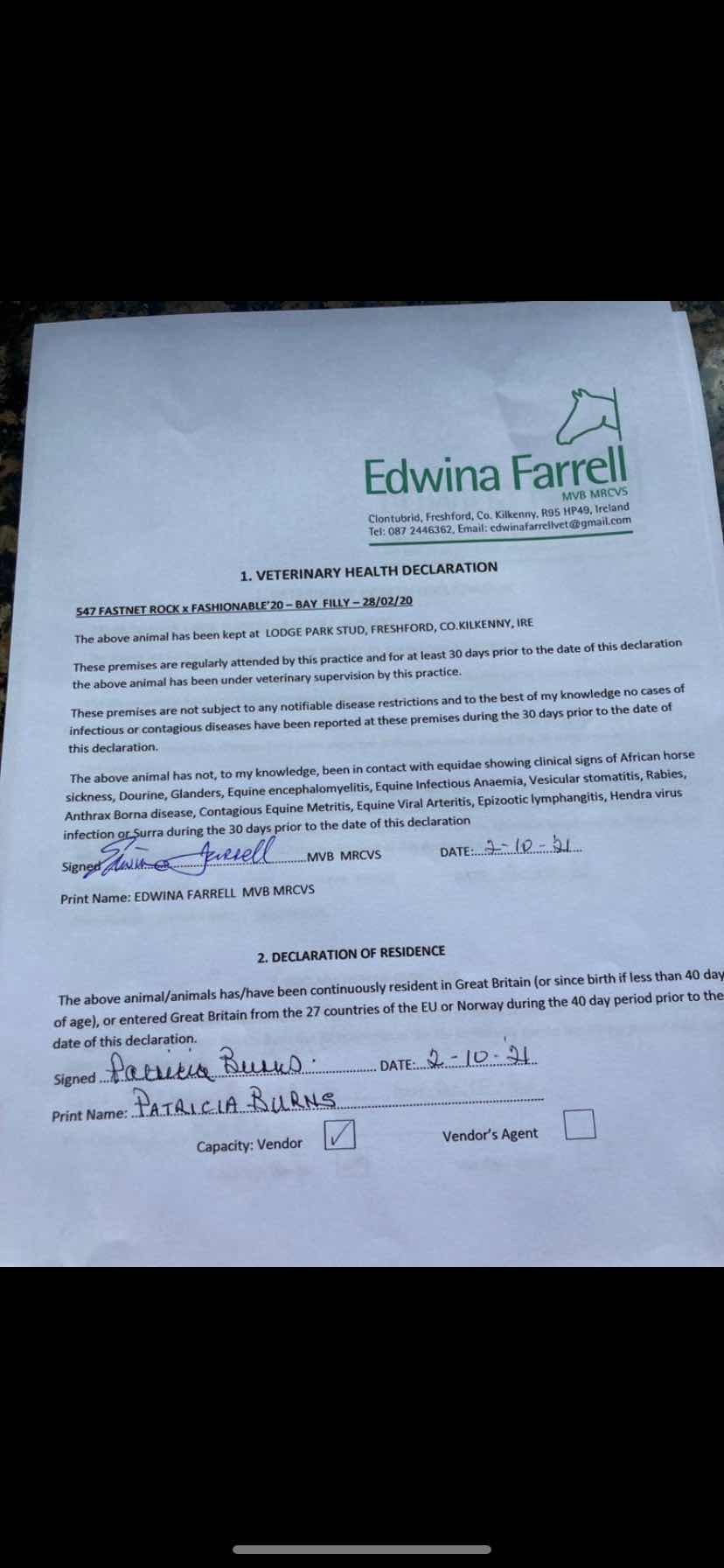 Consignor: Lodge Park Stud, Ireland