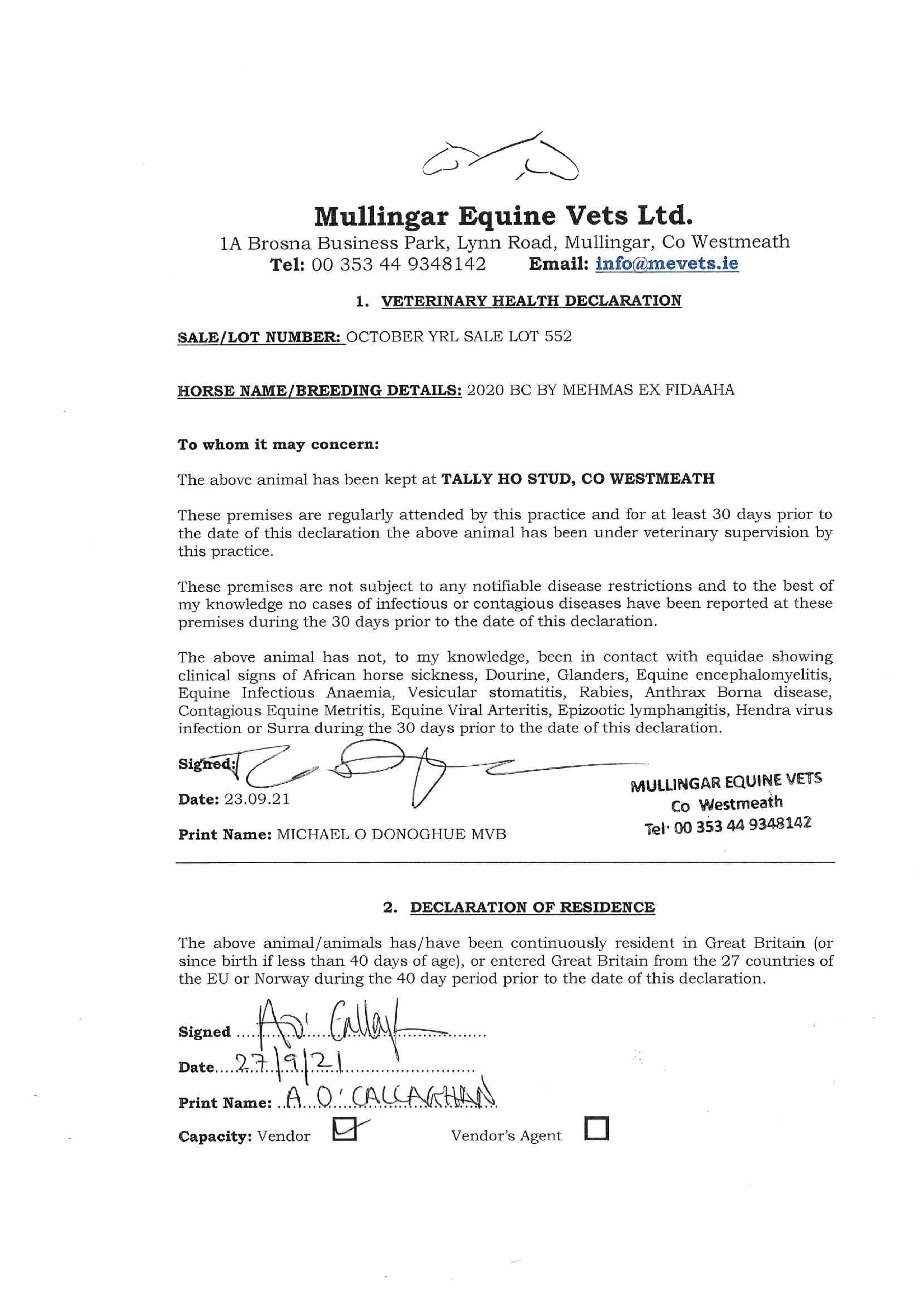 Consignor: Tally-Ho Stud, Ireland