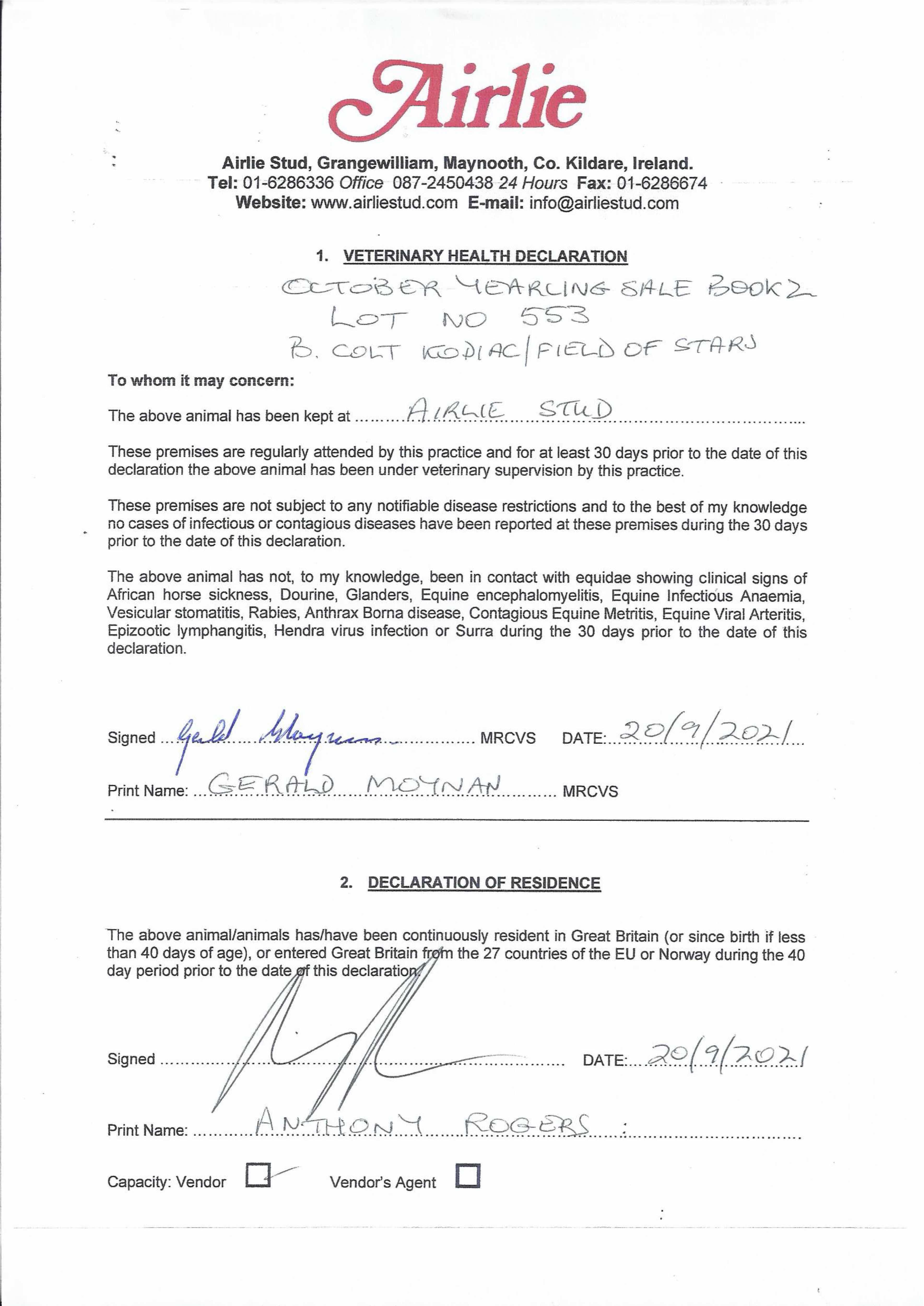 Consignor: Airlie Stud, Ireland