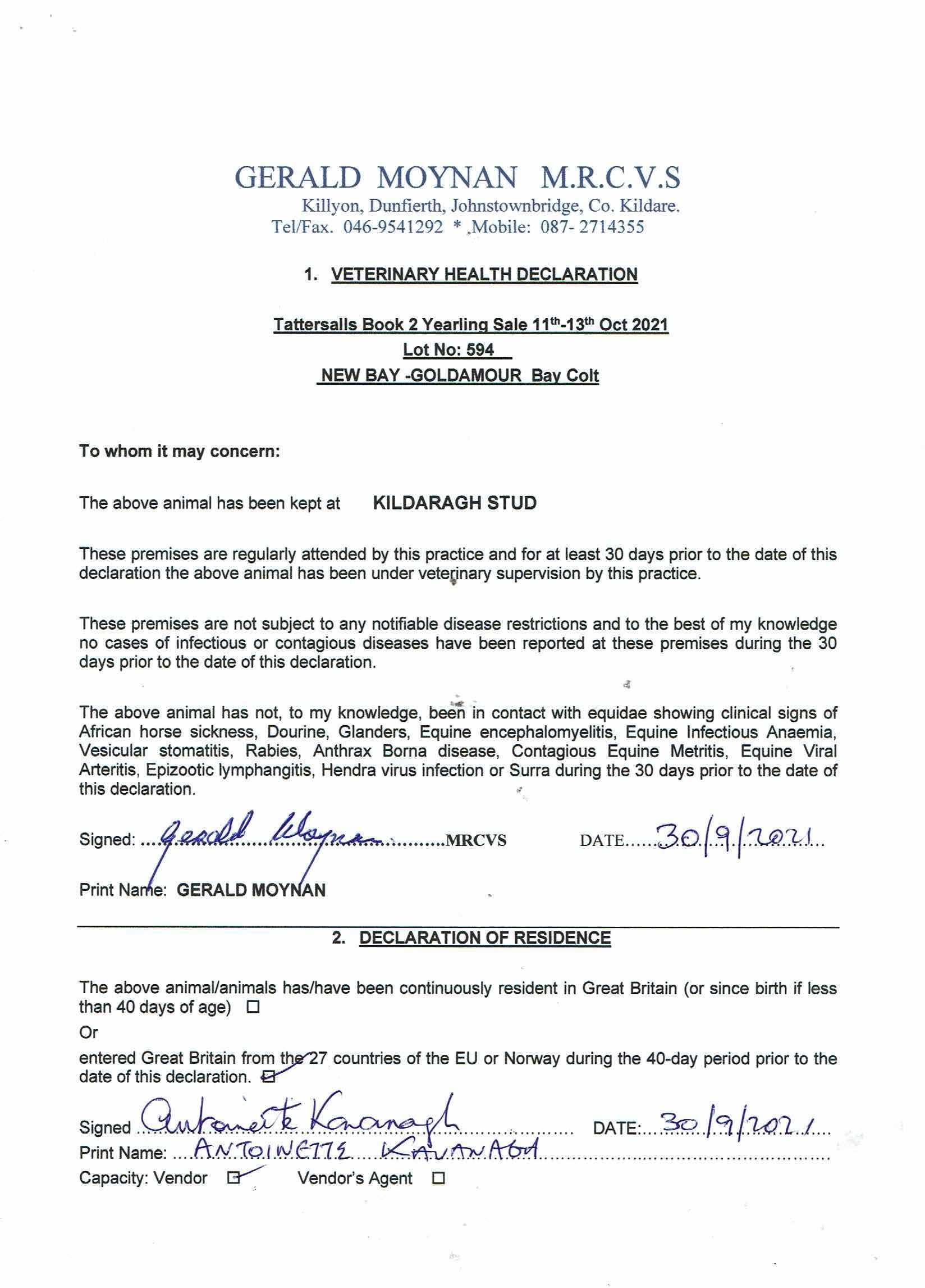 Consignor: Kildaragh Stud, Ireland (Agent)