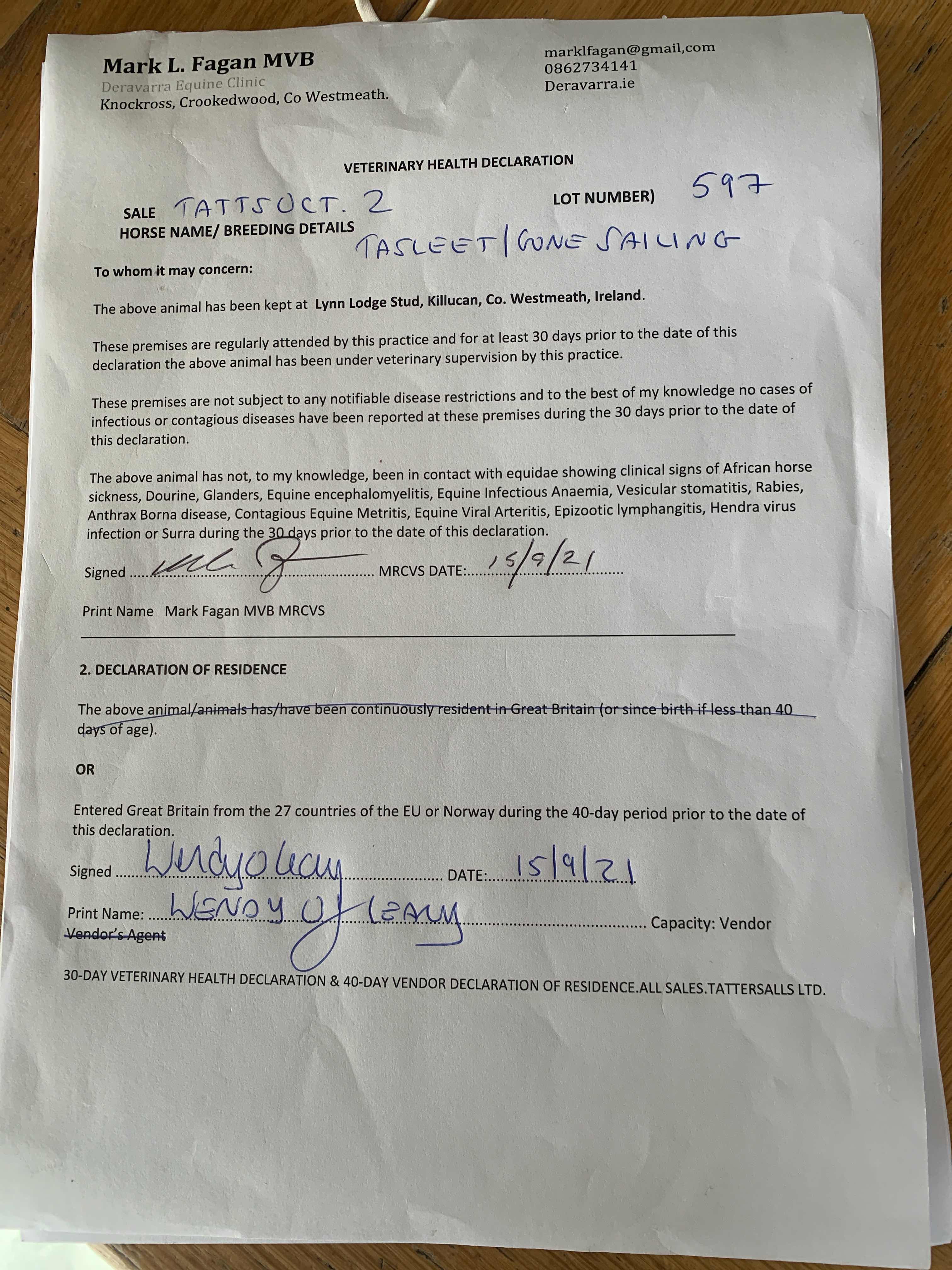 Consignor: Lynn Lodge Stud, Ireland