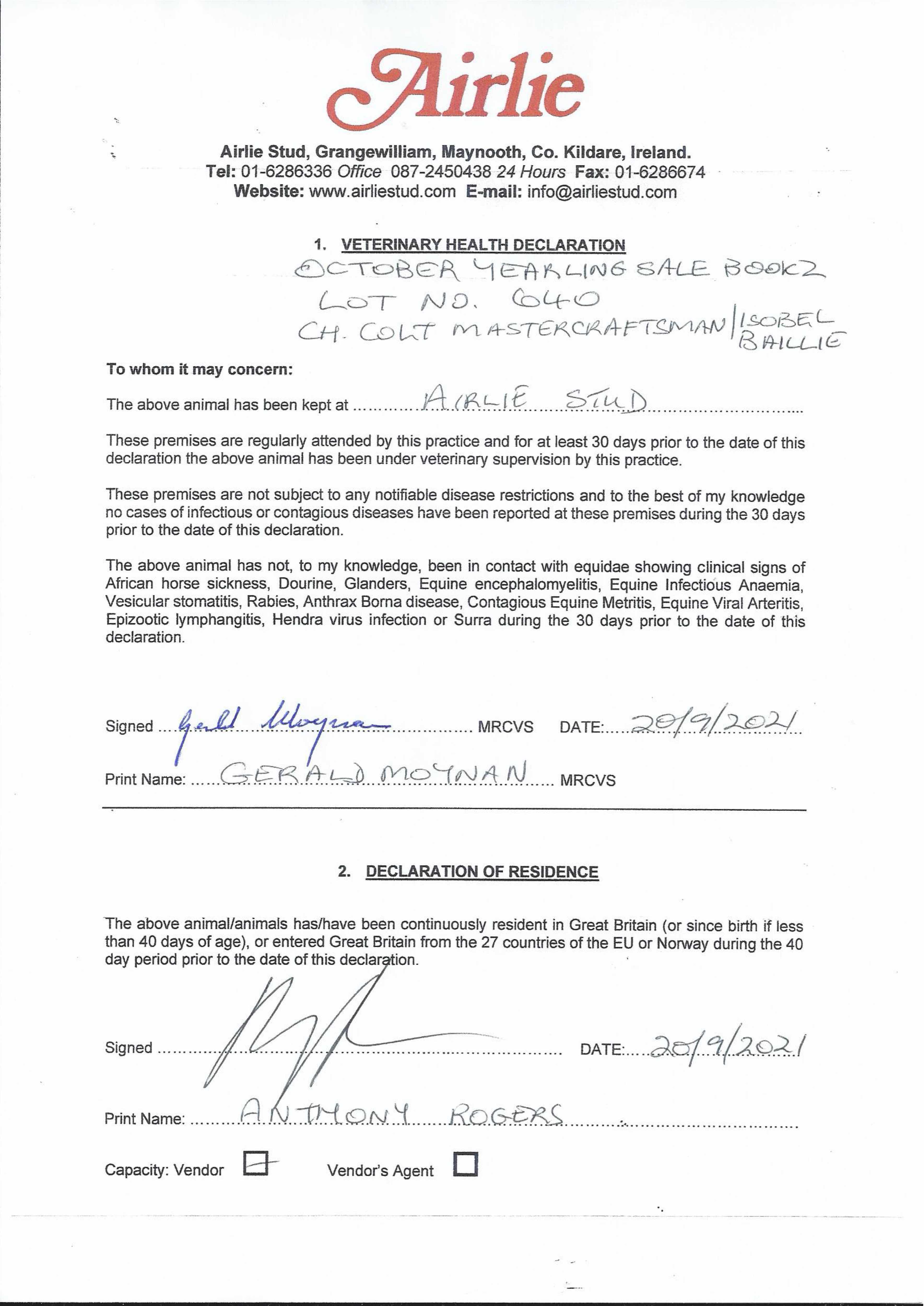 Consignor: Airlie Stud, Ireland