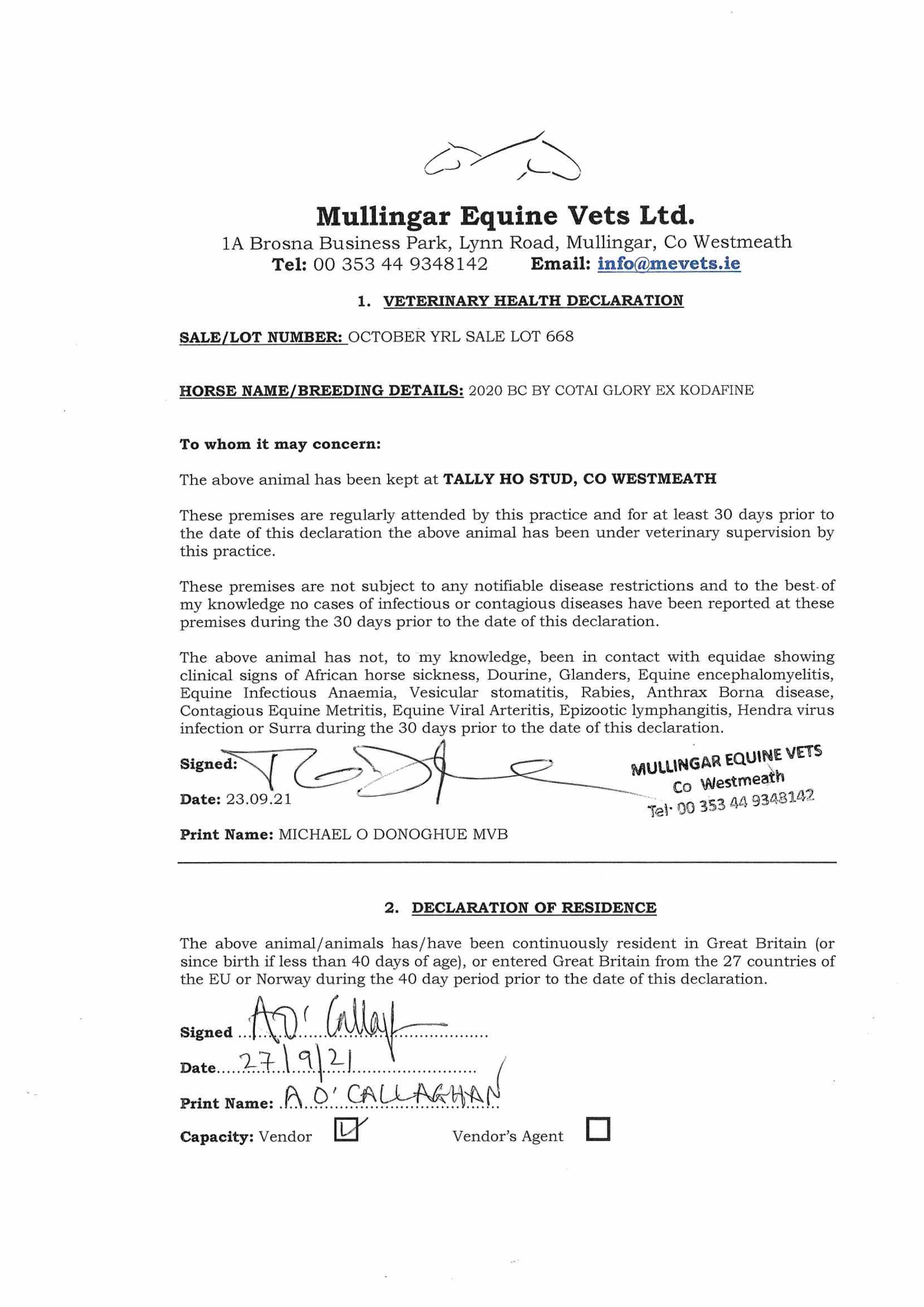 Consignor: Tally-Ho Stud, Ireland