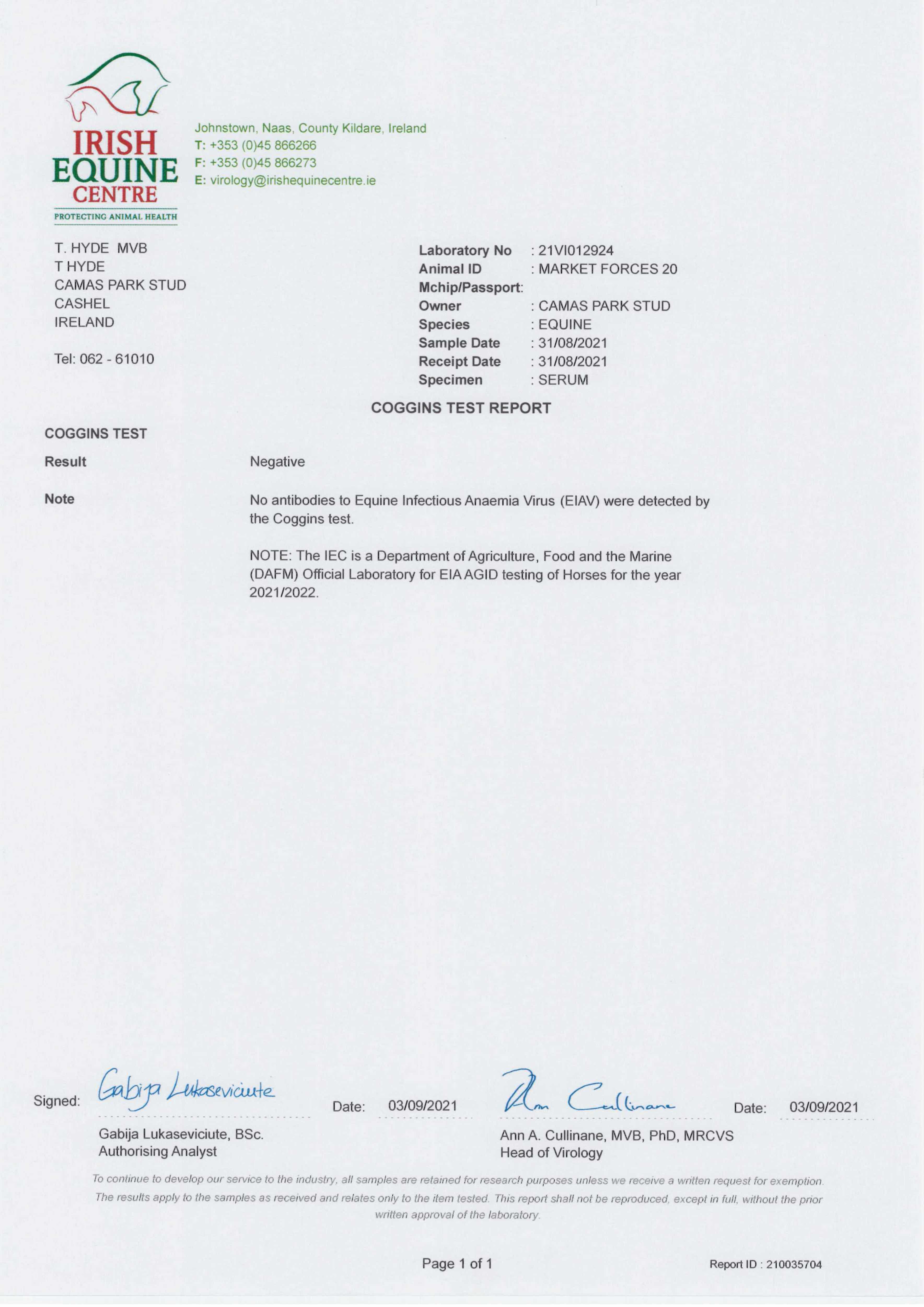Consignor: Camas Park Stud, Ireland