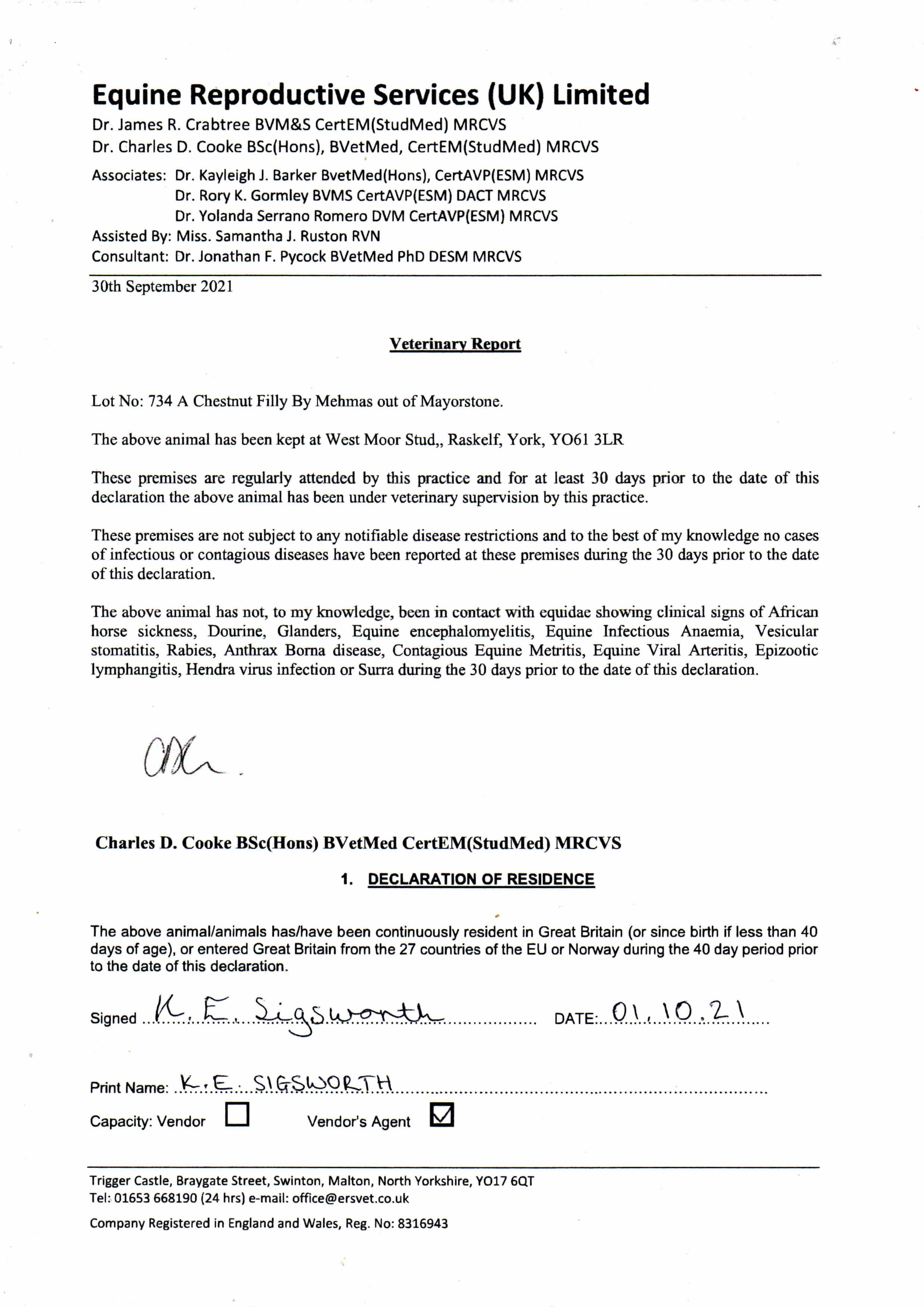 December Foal Sale 2021 lot 910 F. by Dark Angel (IRE) 2021, Oghill House Stud, Ireland (Agent)=>W W E Enterprises 20,000 gns