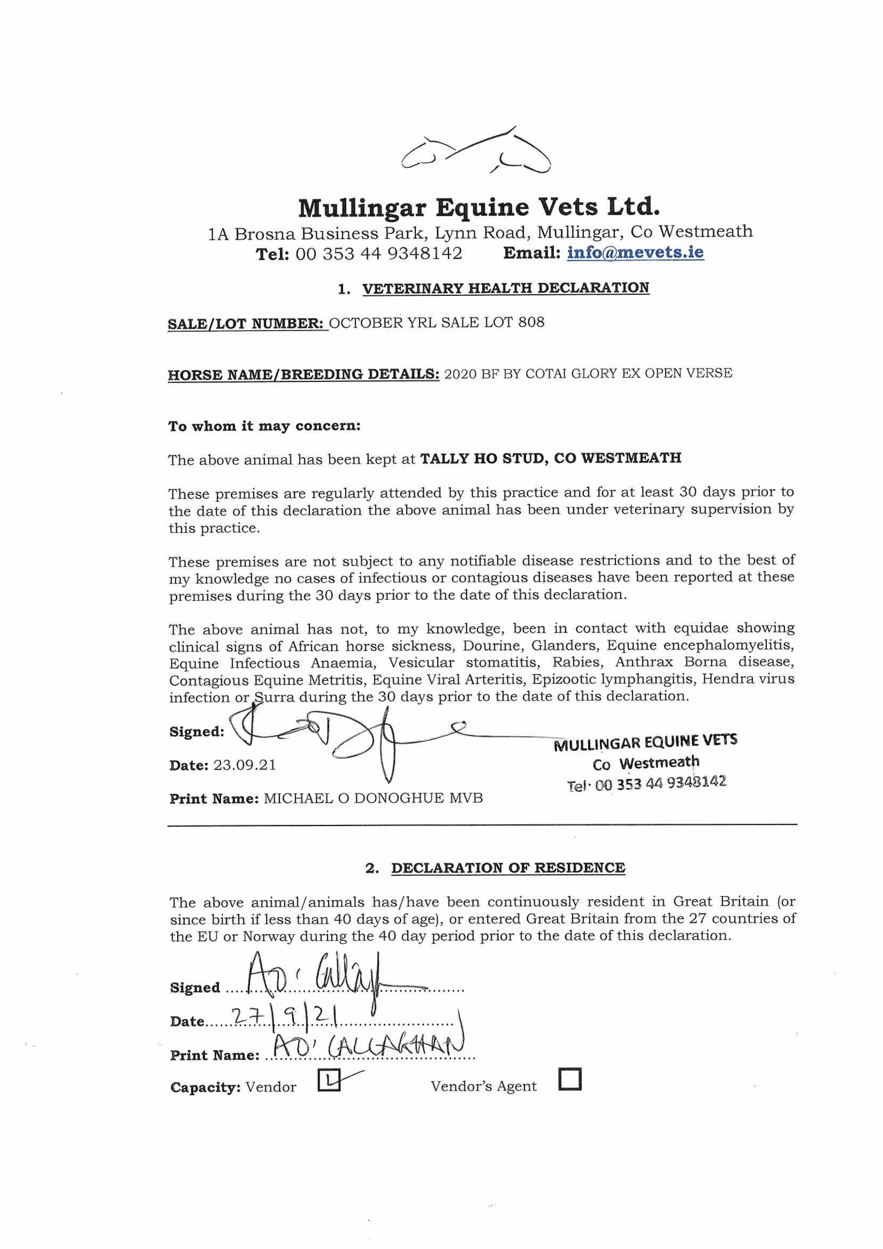 Consignor: Tally-Ho Stud, Ireland