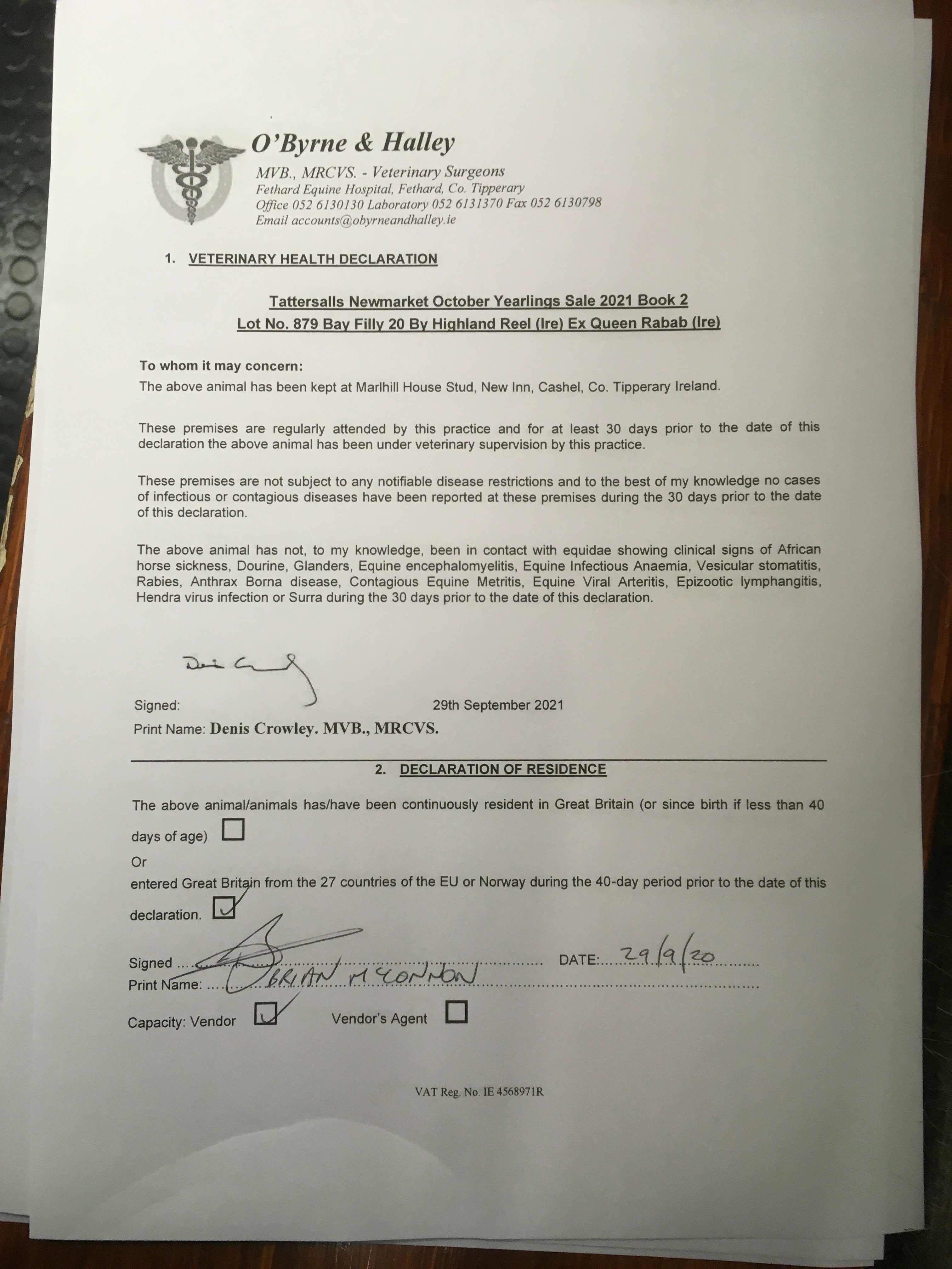 Consignor: Marlhill House Stud, Ireland