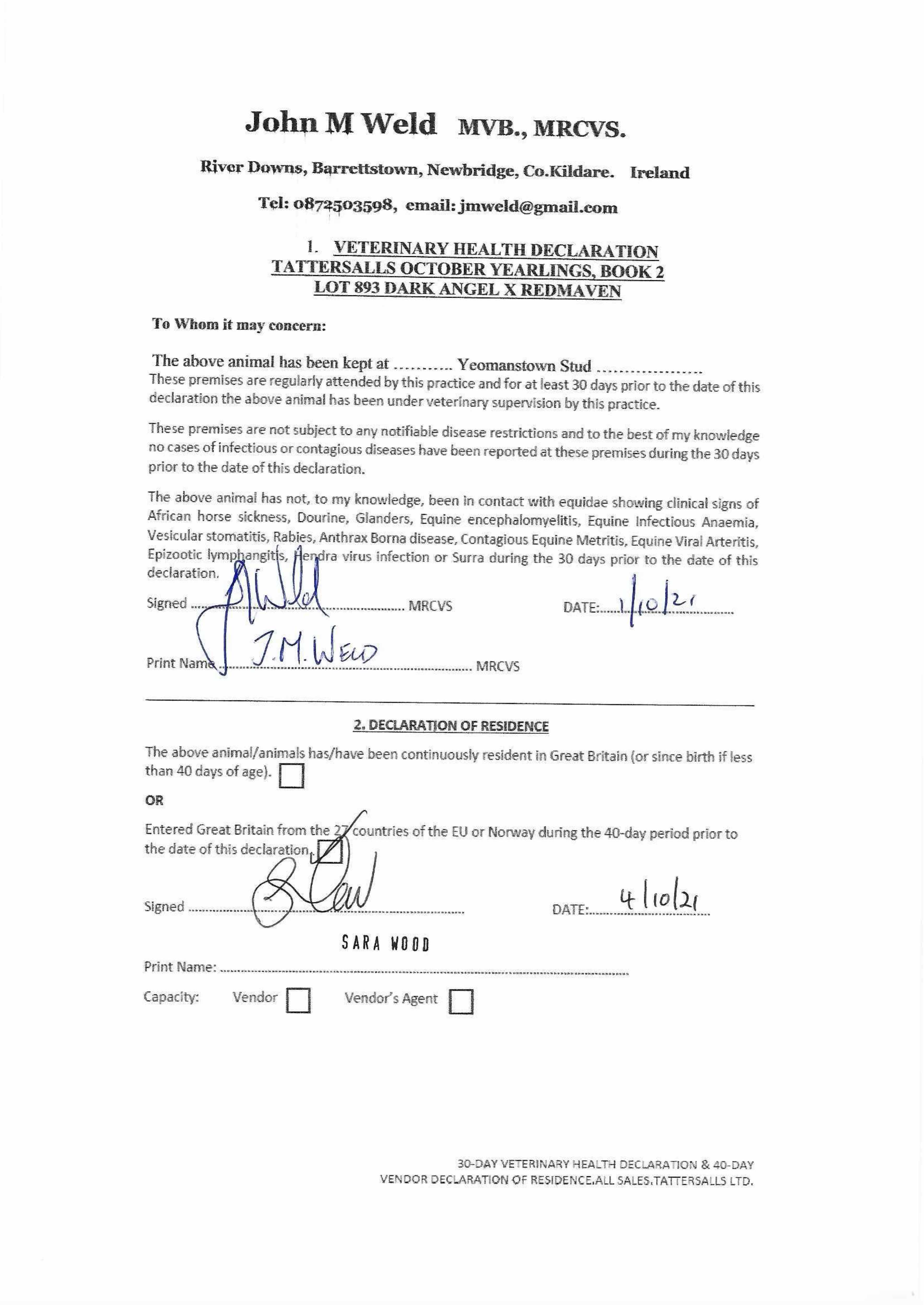 Consignor: Yeomanstown Stud, Ireland
