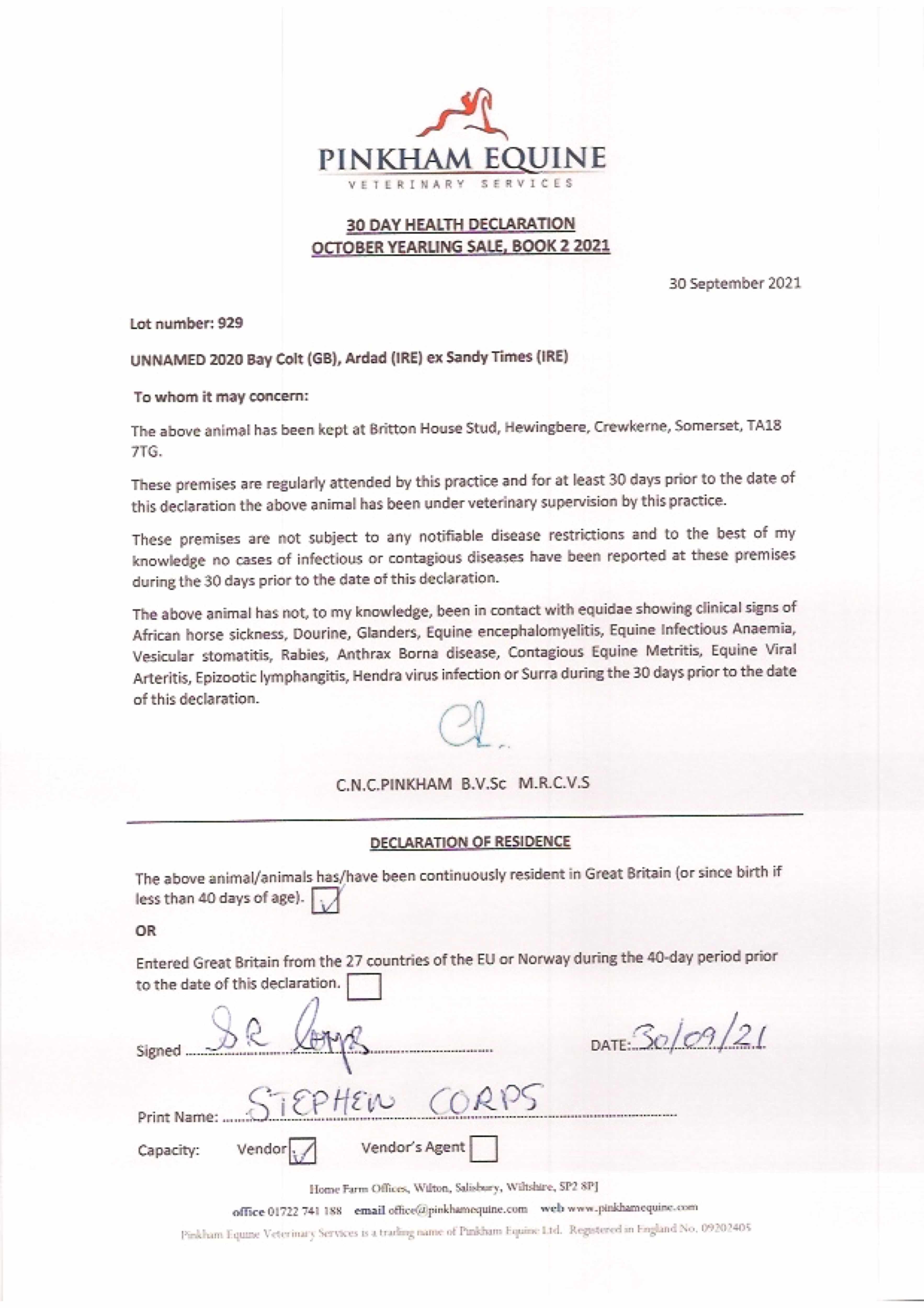 Ascot Yearling Sale 2020 lot 133 F. 2019, Britton House Stud=>C Gordon-Watson Bloodstock 12,500 gns