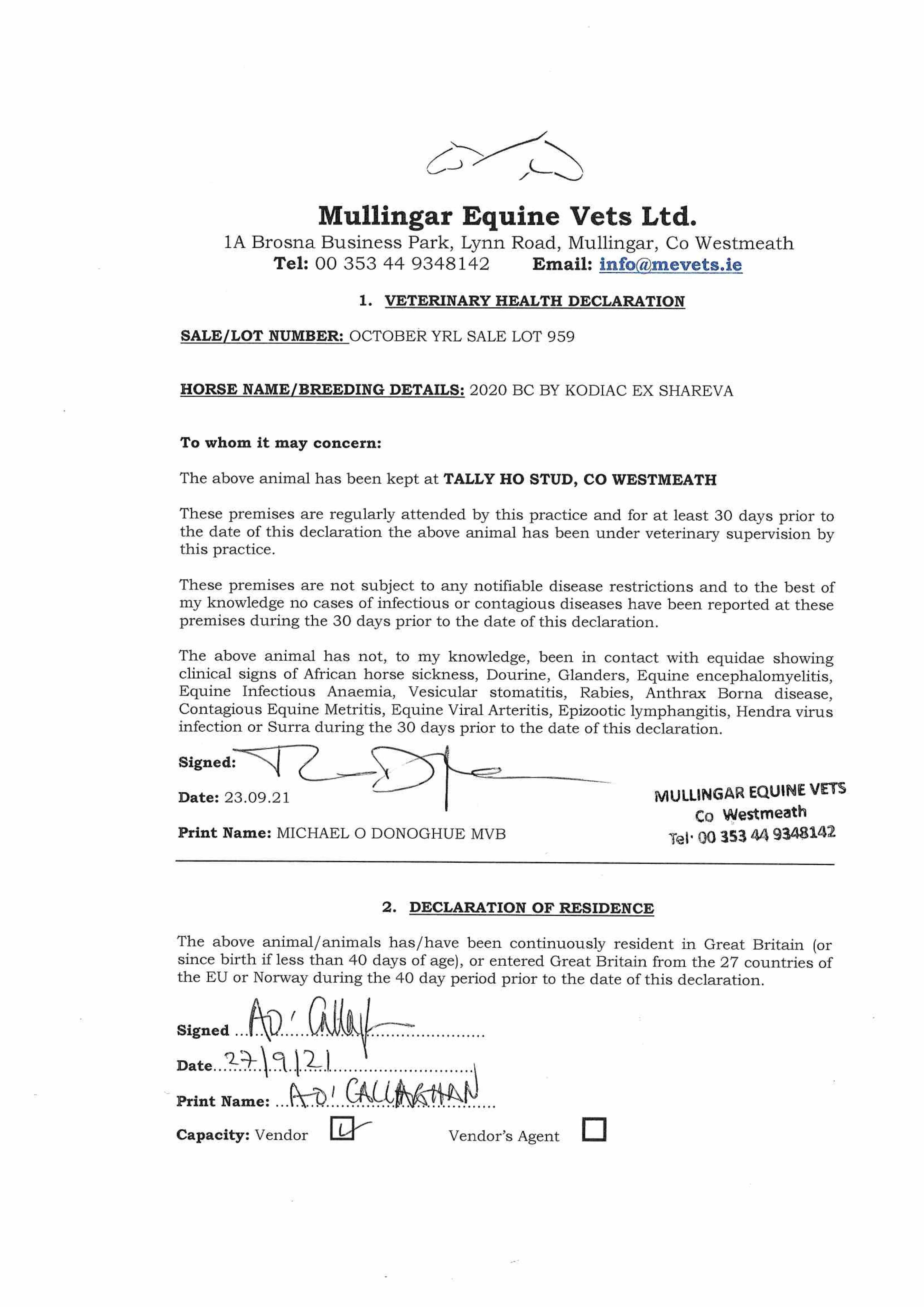 Consignor: Tally-Ho Stud, Ireland