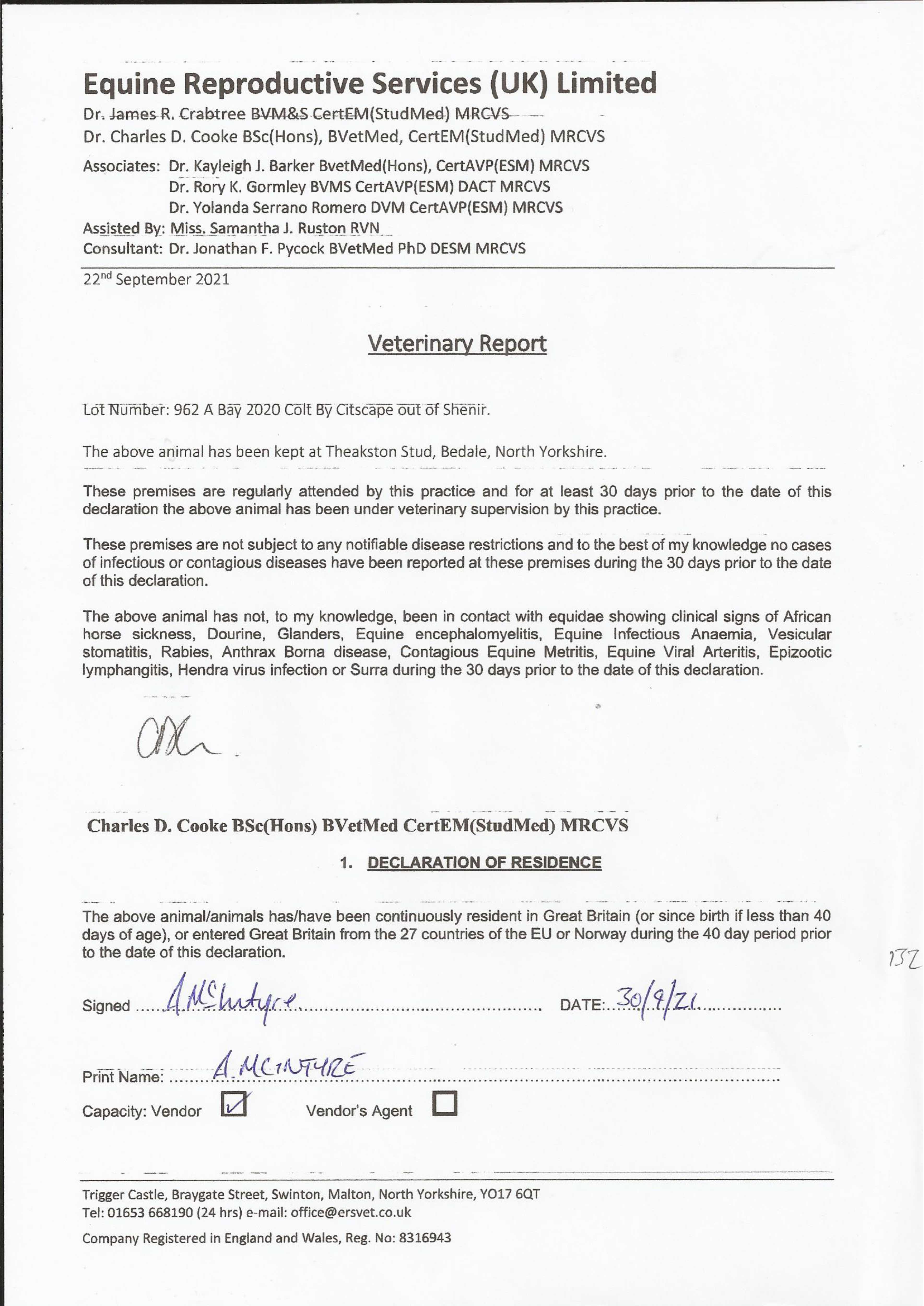 Contact: Andrew McIntyre ✆ 07867680143 ✉ theakstonstud@hotmail.com