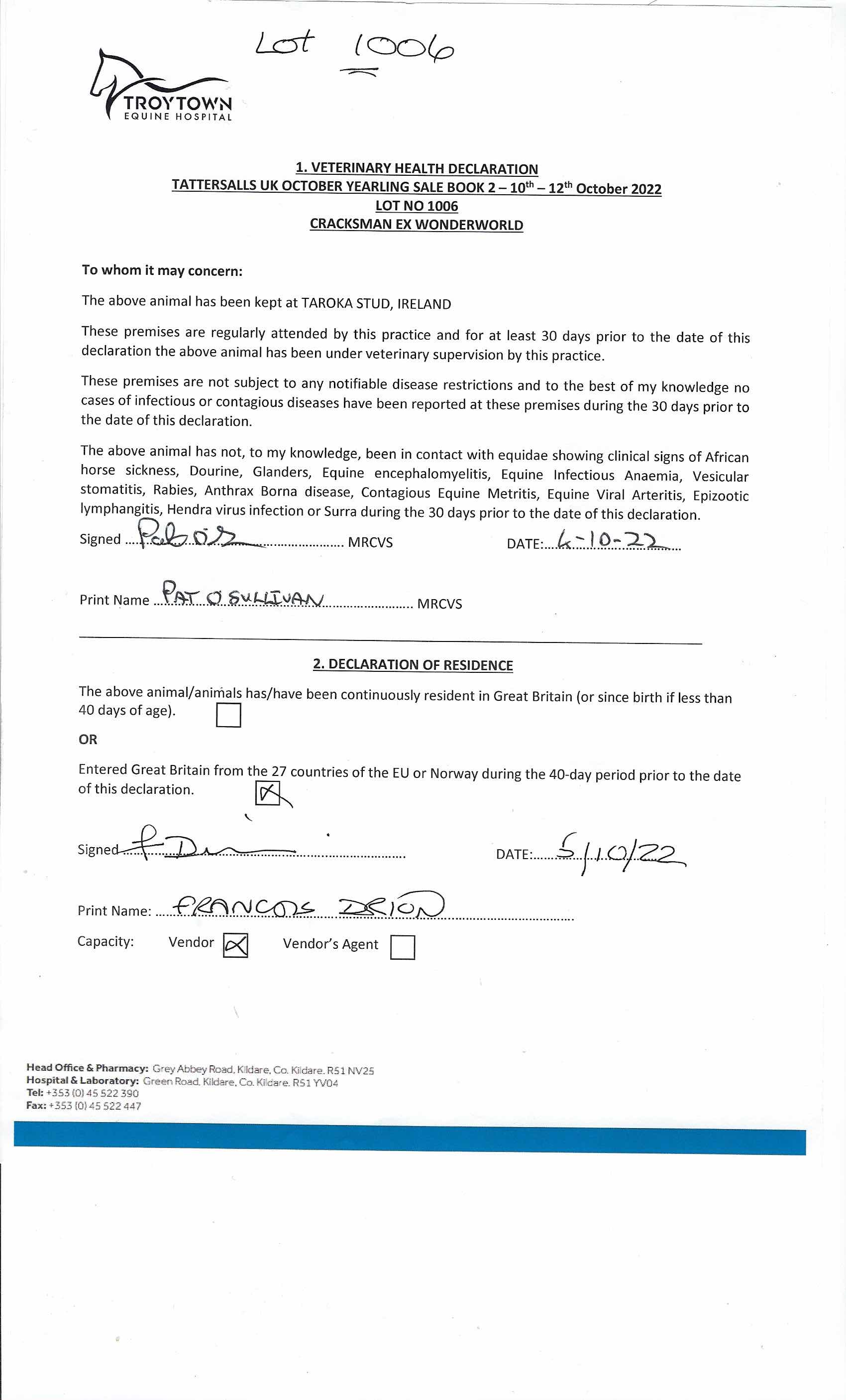 October Yearling Sale, Book 1 2023 lot 202 F. by Bated Breath (GB) 2022, Taroka Stud, Ireland=>EDC Agency 150,000 gns