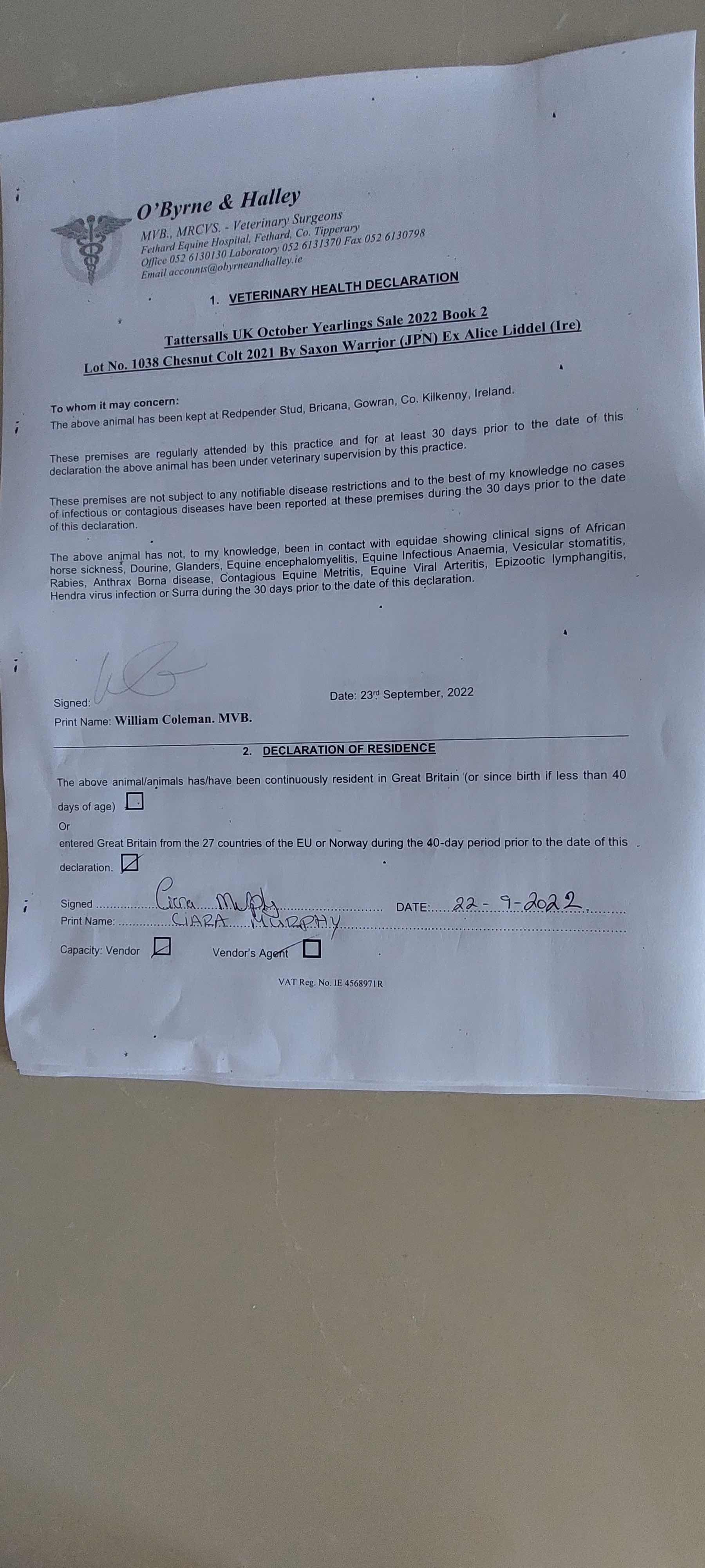 Consignor: Redpender Stud, Ireland