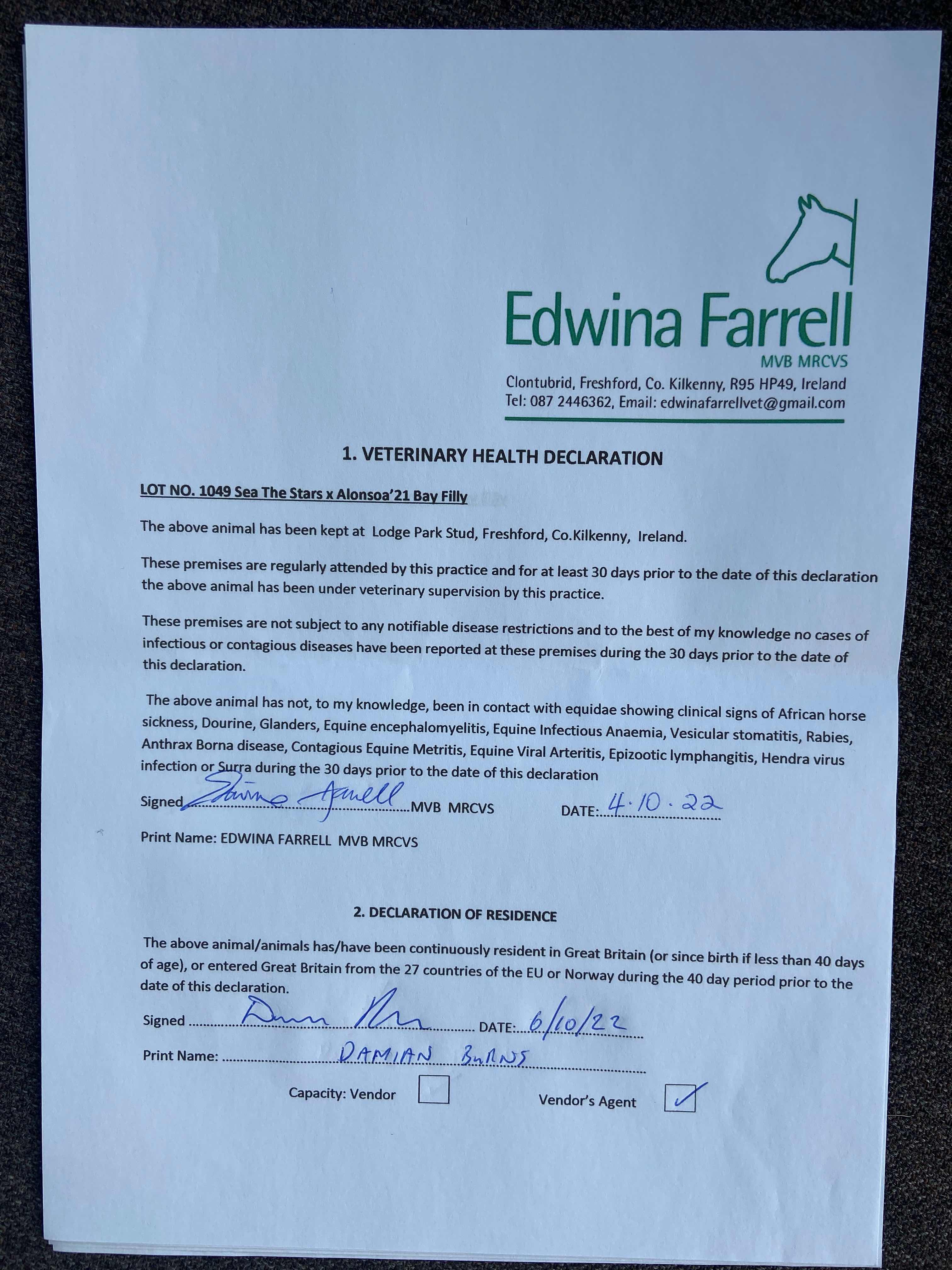 Consignor: Lodge Park Stud, Ireland