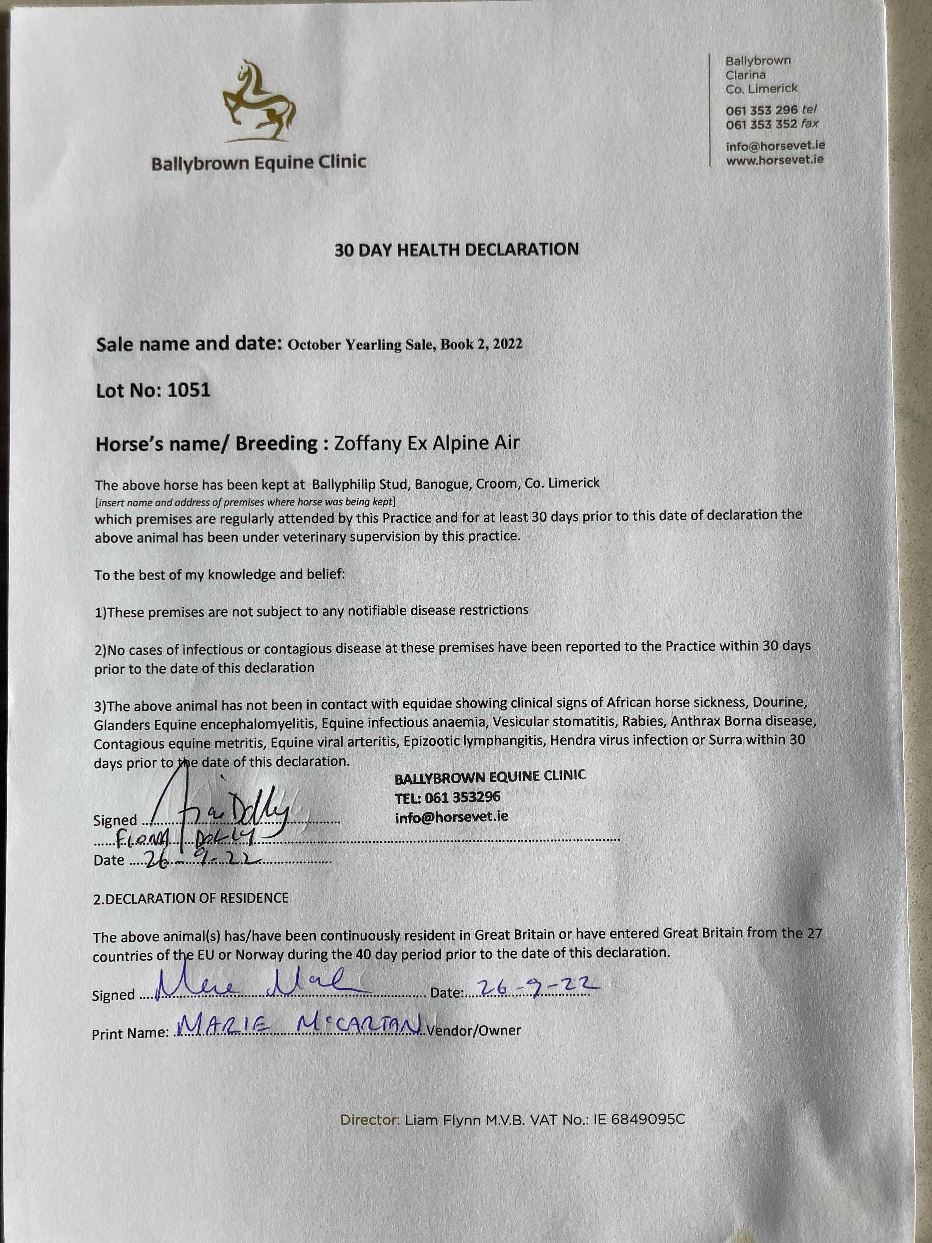 Lot 1051 Zoffany (IRE) /Alpine Air (GB) B.C. (IRE)