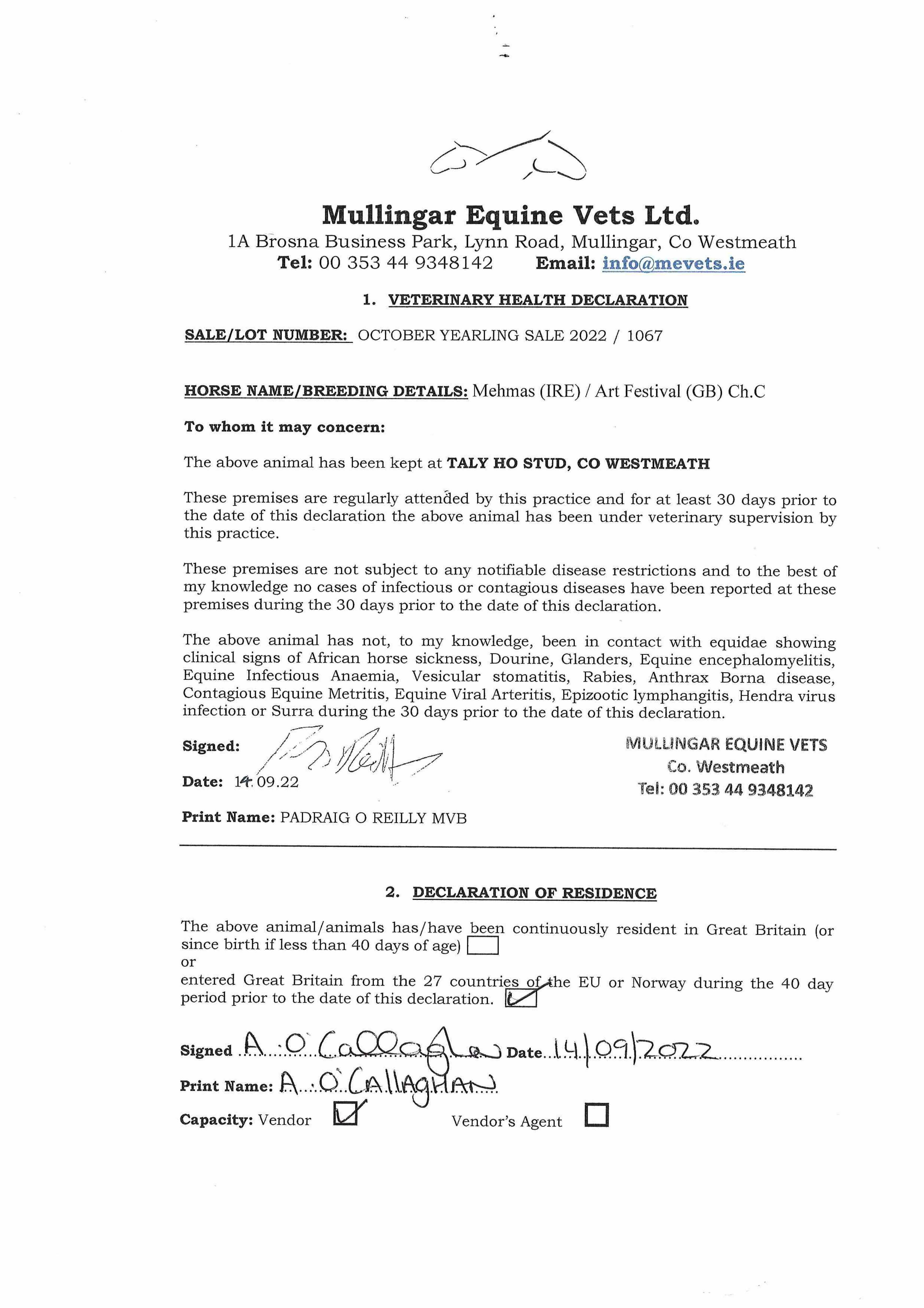 Consignor: Tally-Ho Stud, Ireland