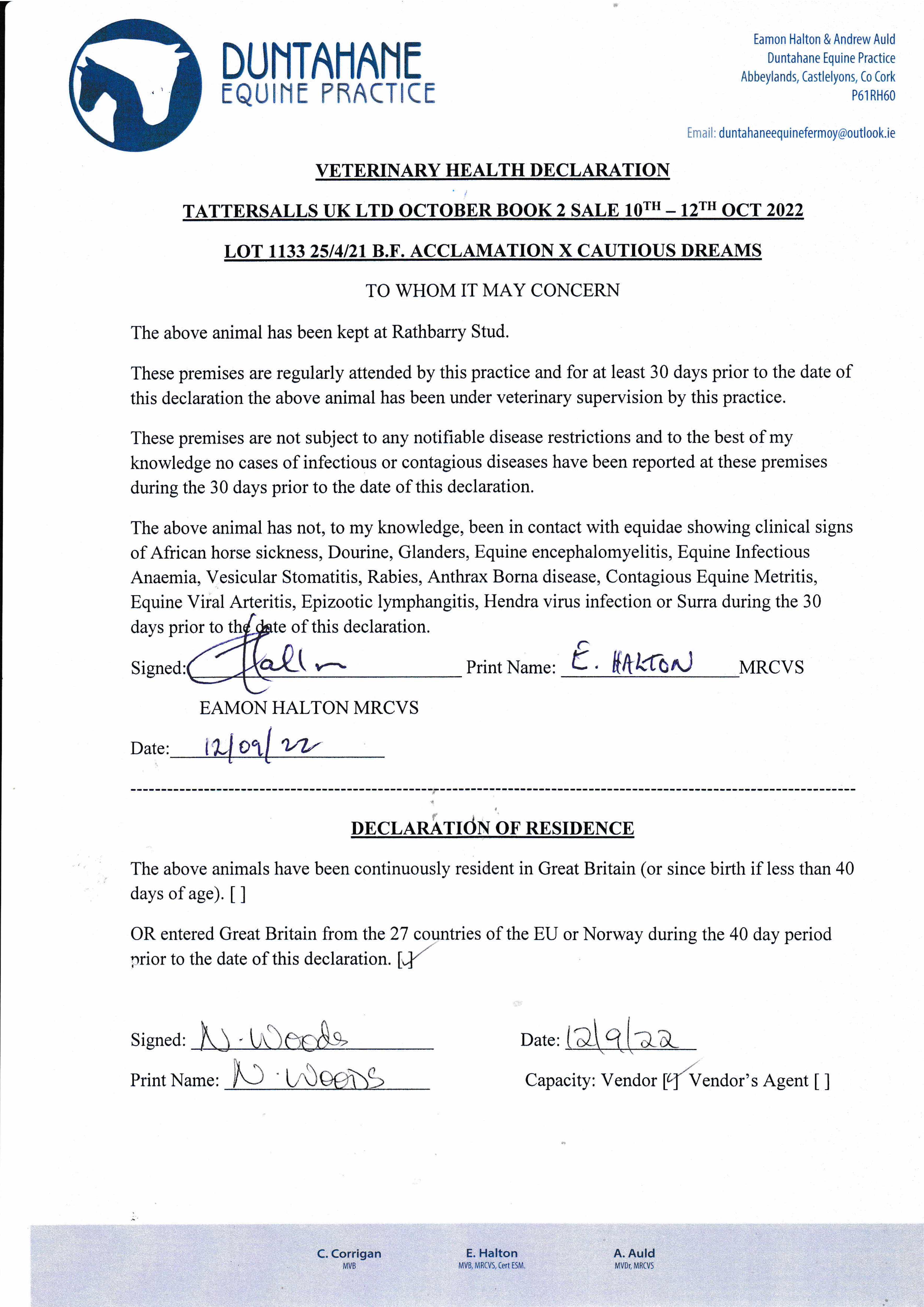 Consignor: Rathbarry Stud, Ireland
