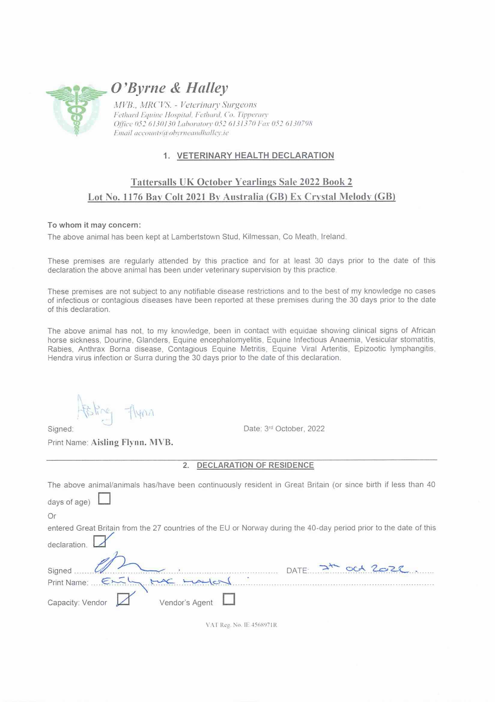 Consignor: Lambertstown Stud, Ireland