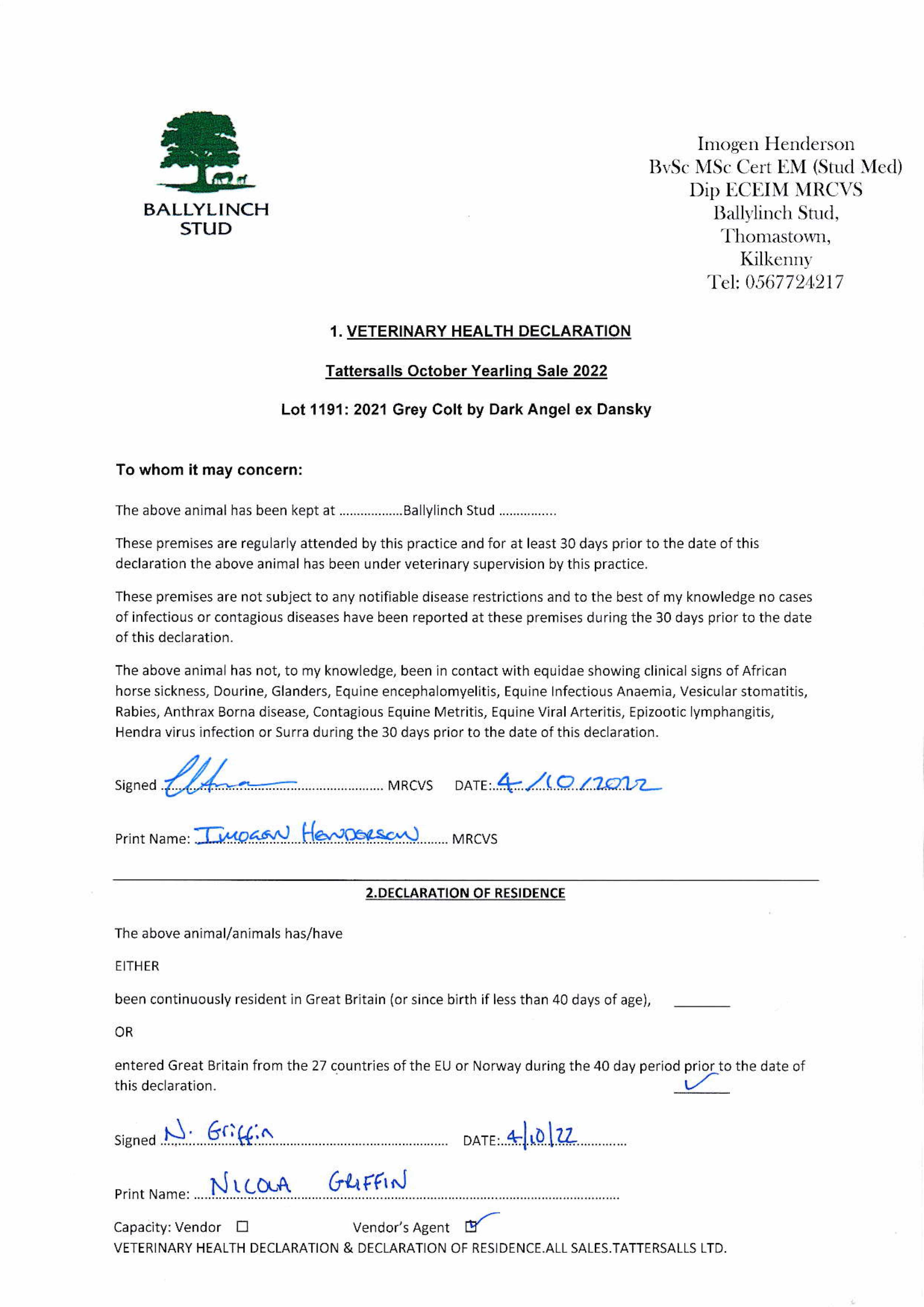 Consignor: Ballylinch Stud, Ireland