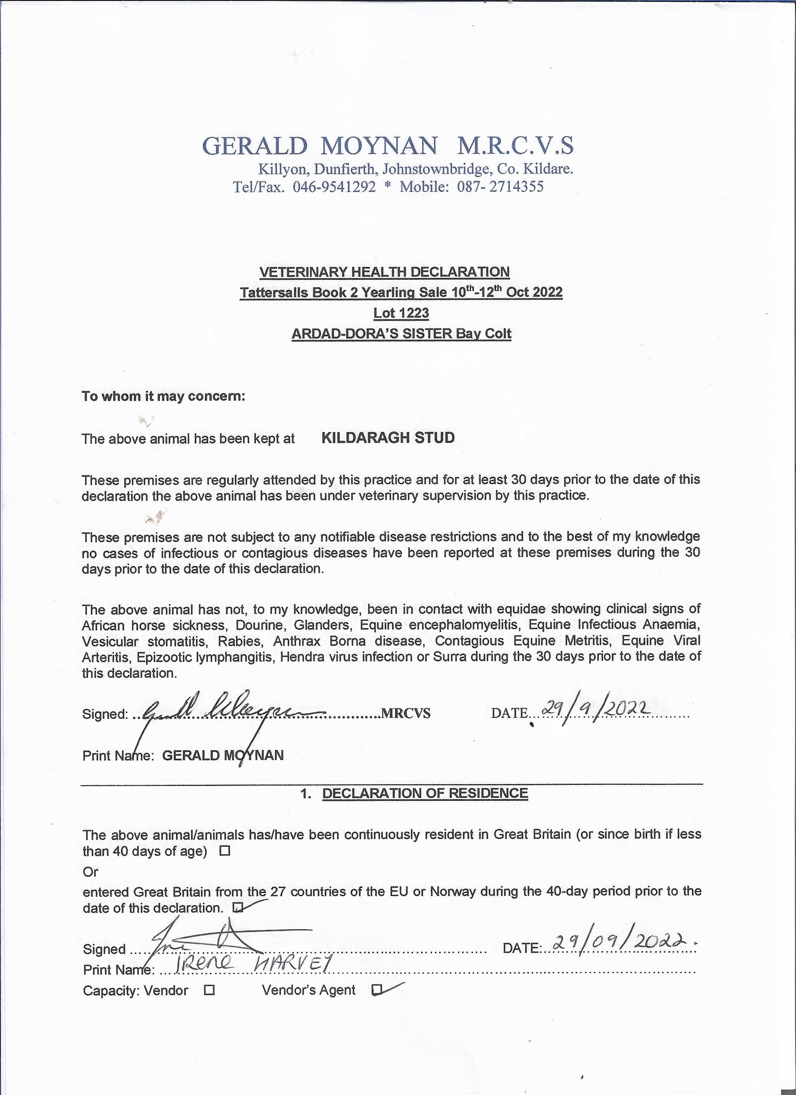 Consignor: Kildaragh Stud, Ireland (Agent)