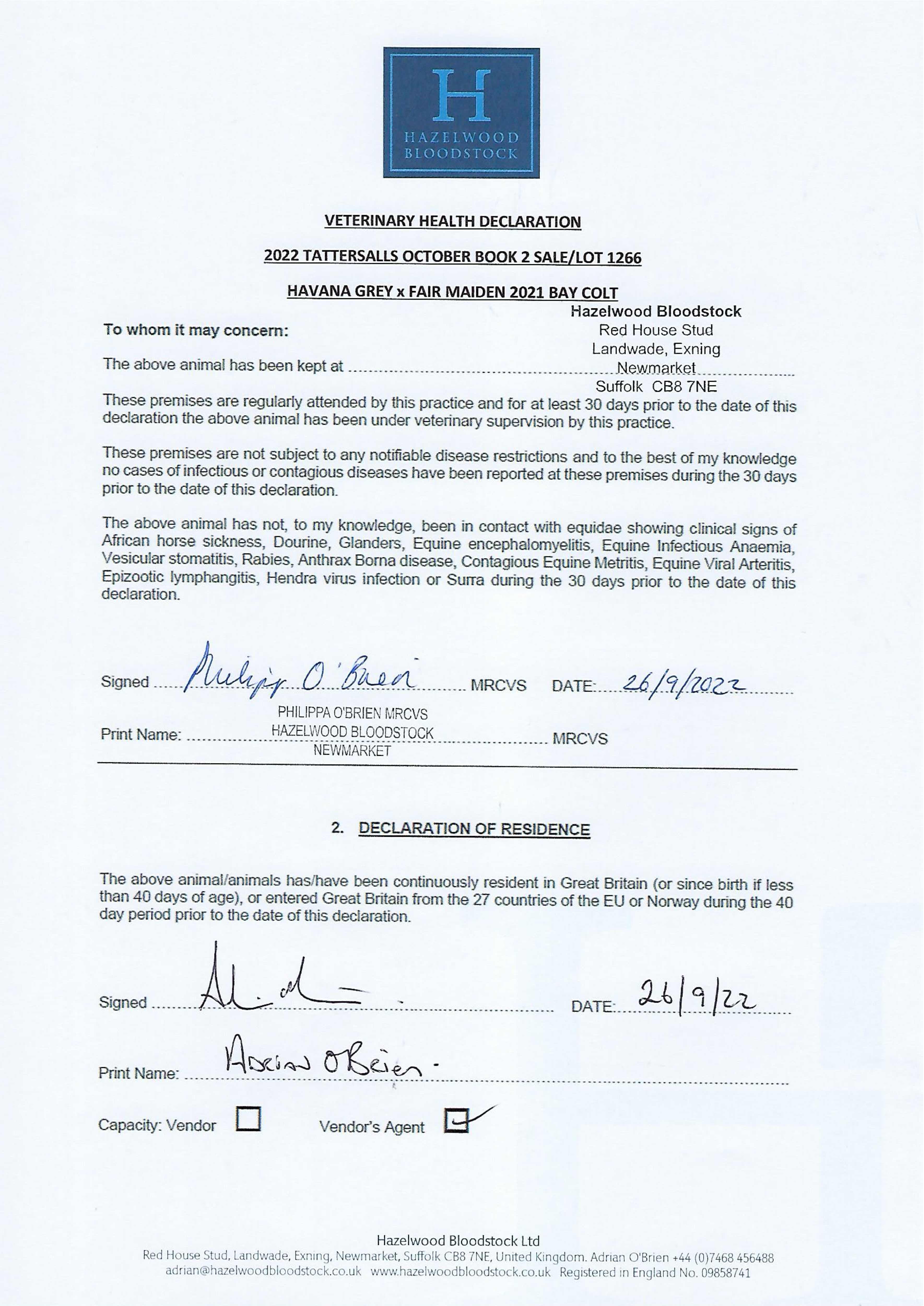 Contact: Adrian O'Brien ✆ +447468456488 ✉ adrian@hazelwoodbloodstock.co.uk