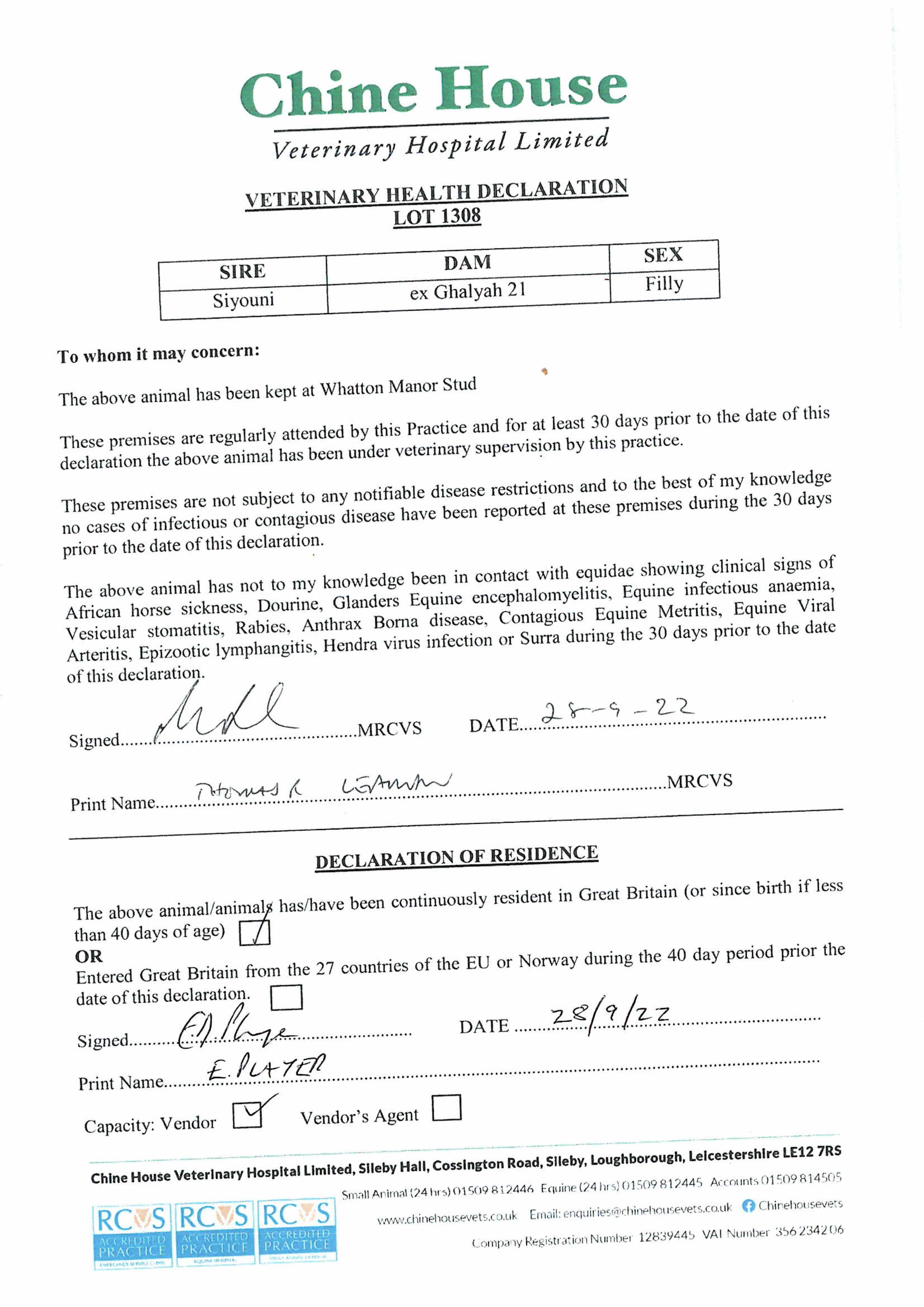 Consignor: Whatton Manor Stud