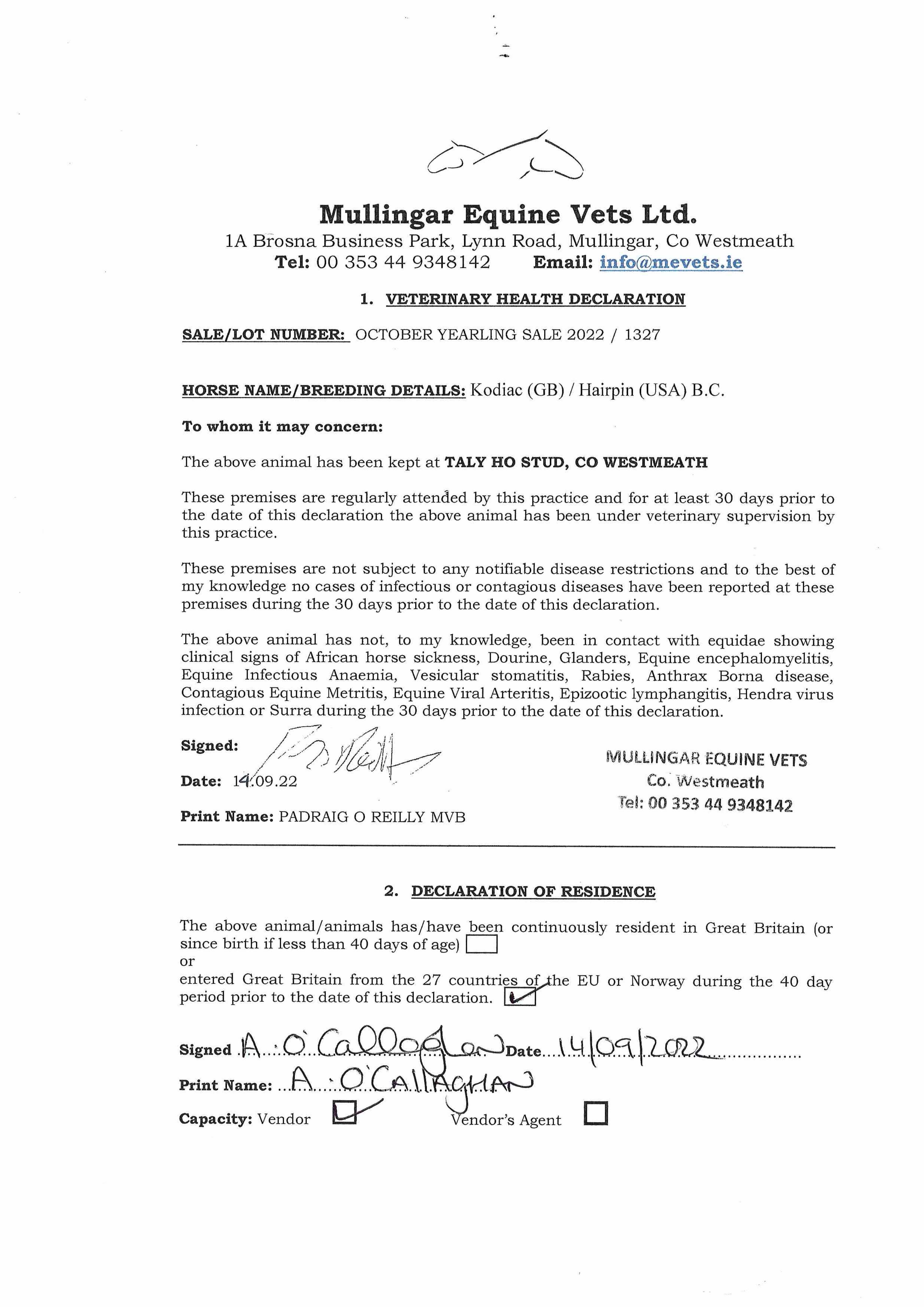 Consignor: Tally-Ho Stud, Ireland