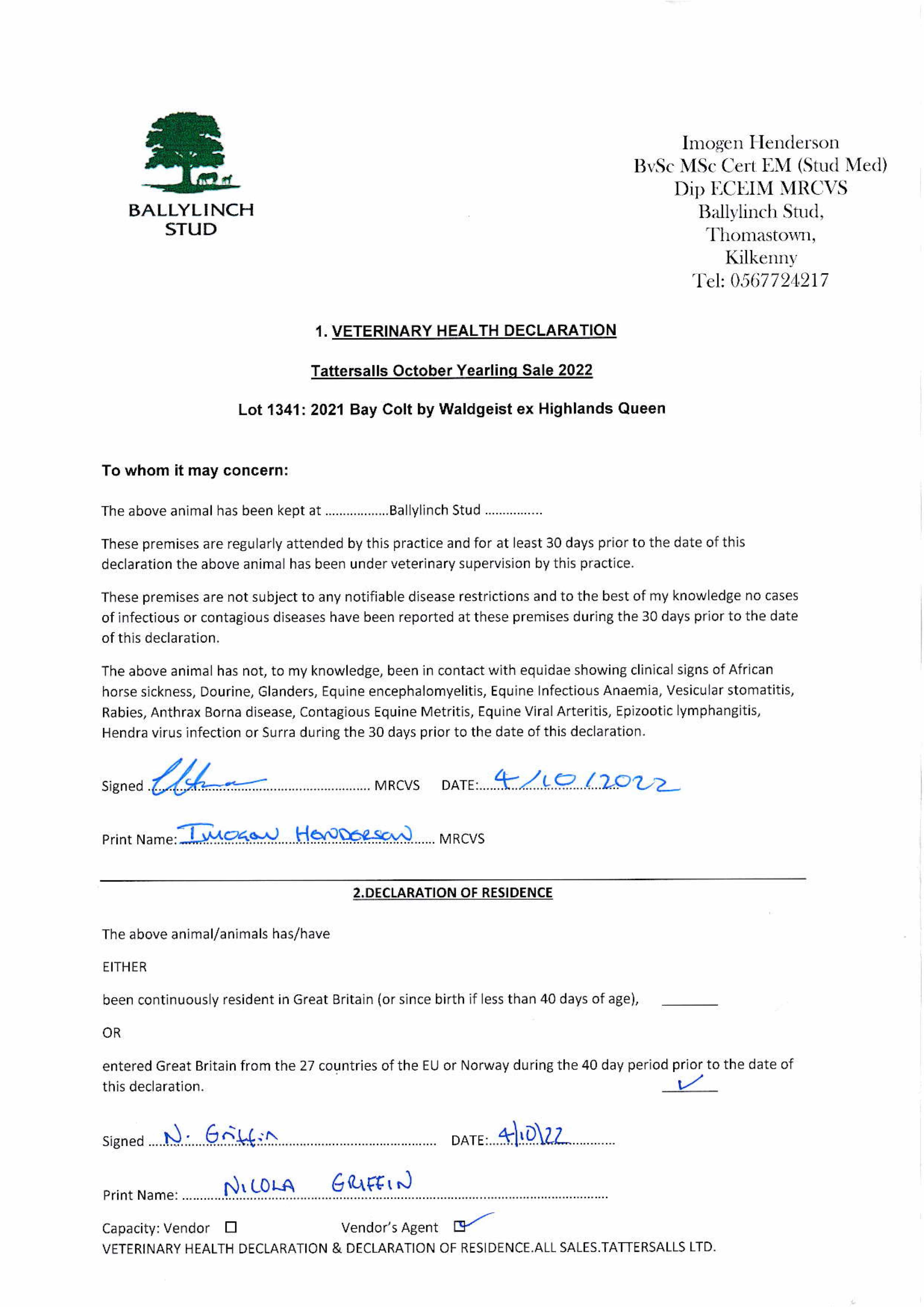 Consignor: Ballylinch Stud, Ireland