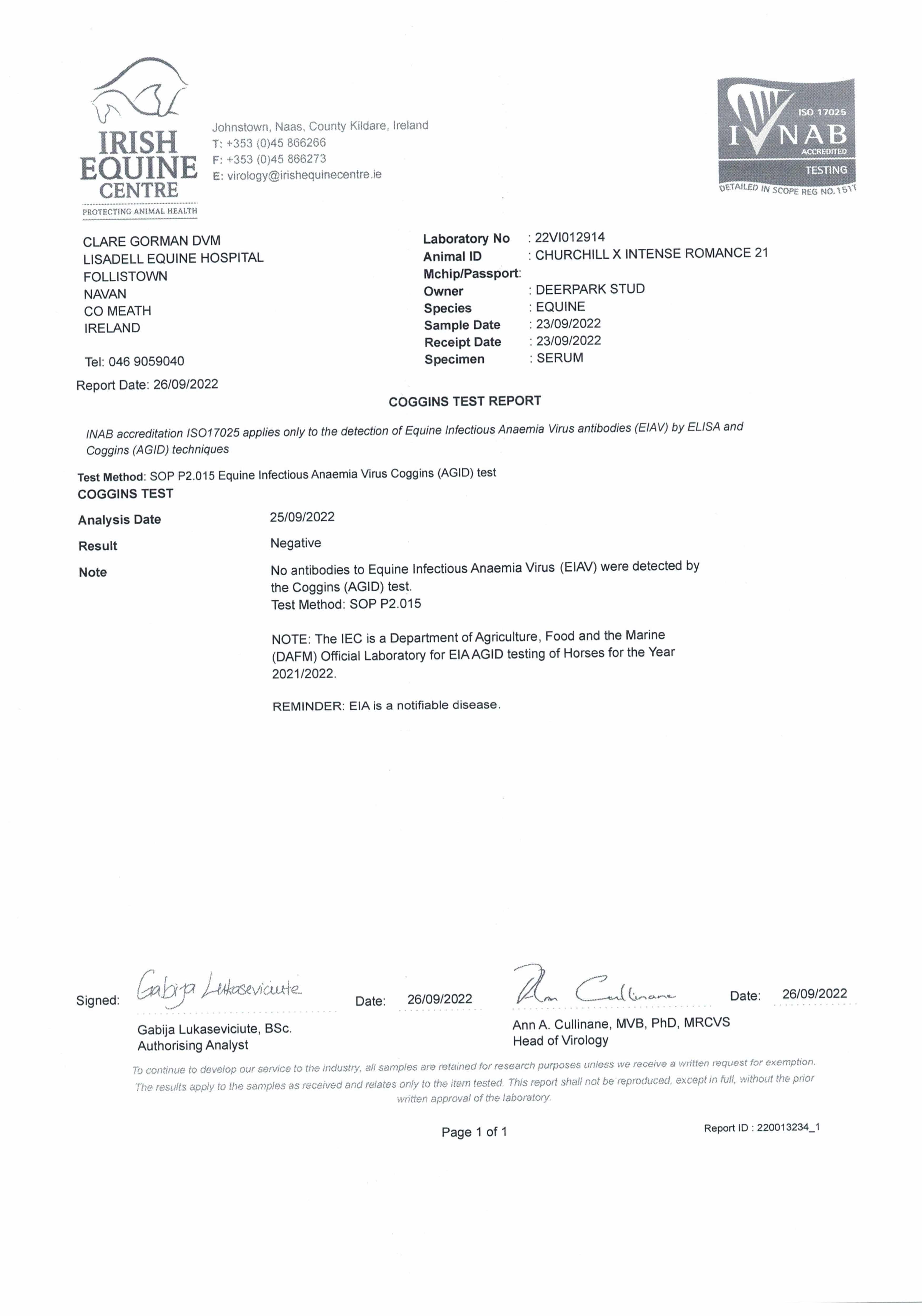 Consignor: Deerpark Stud, Ireland