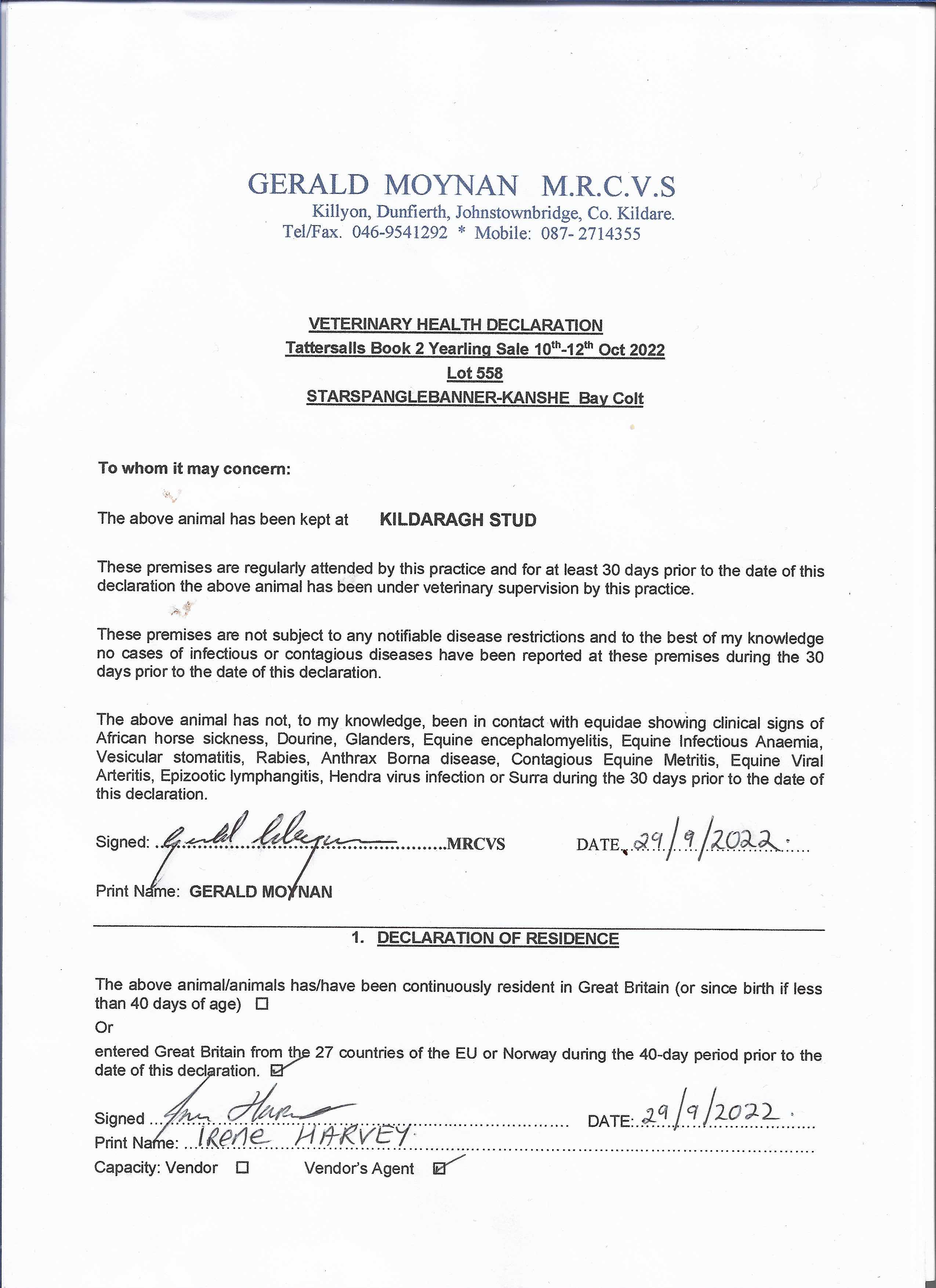 Consignor: Kildaragh Stud, Ireland (Agent)