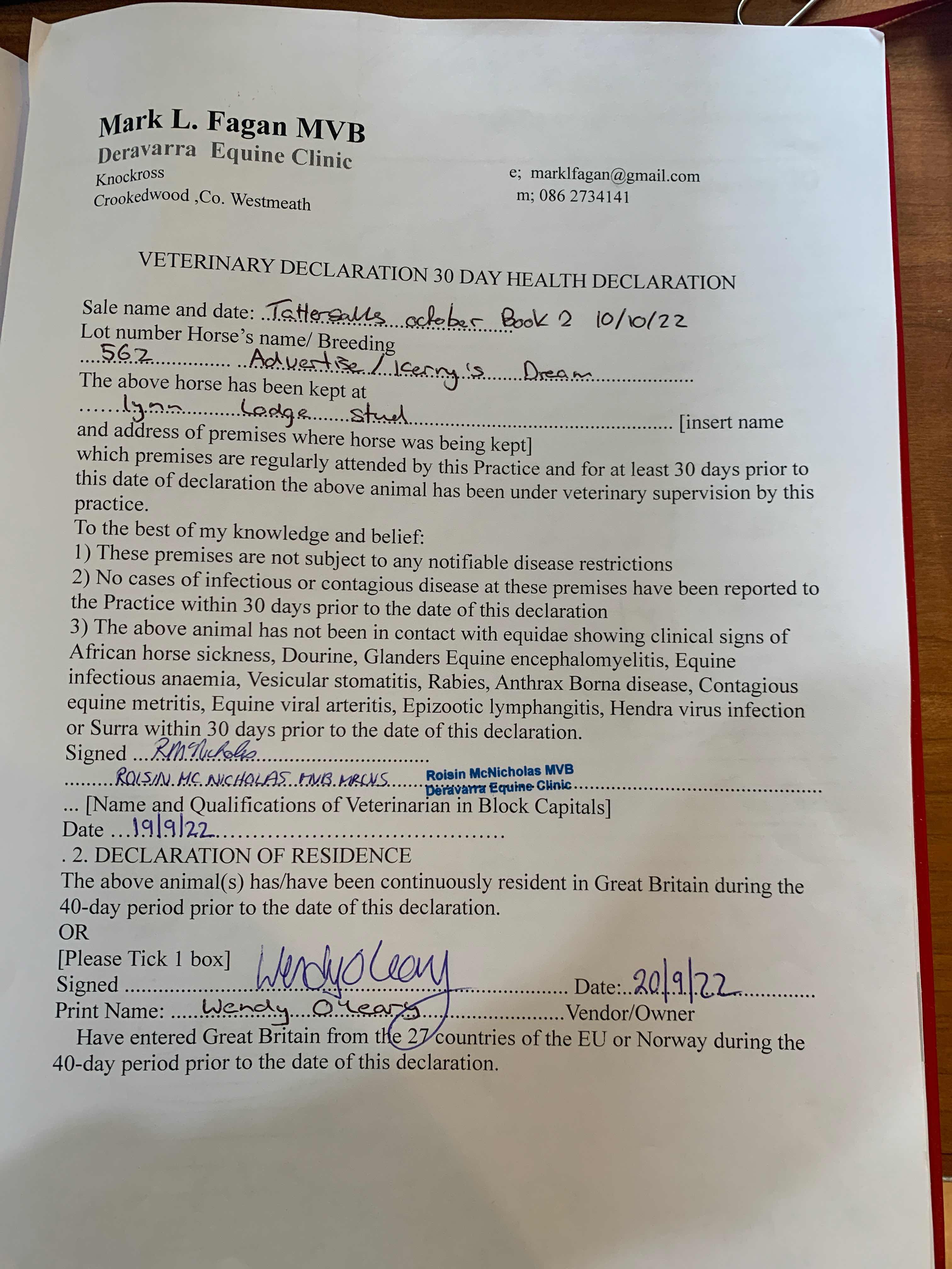 Consignor: Lynn Lodge Stud, Ireland