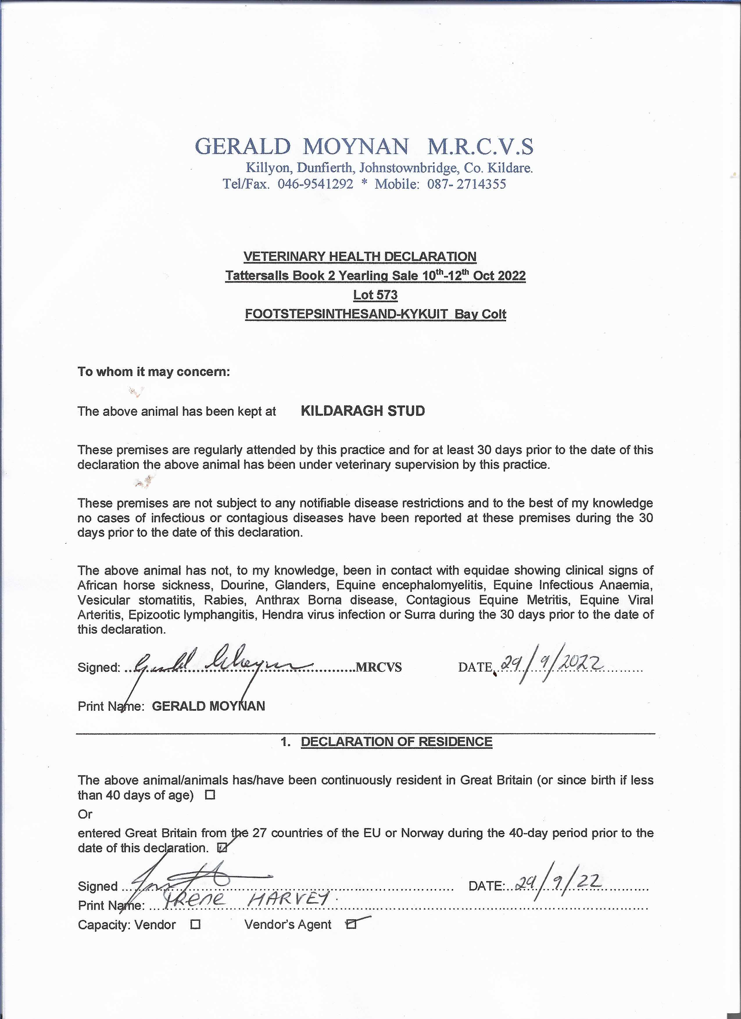 Consignor: Kildaragh Stud, Ireland (Agent)