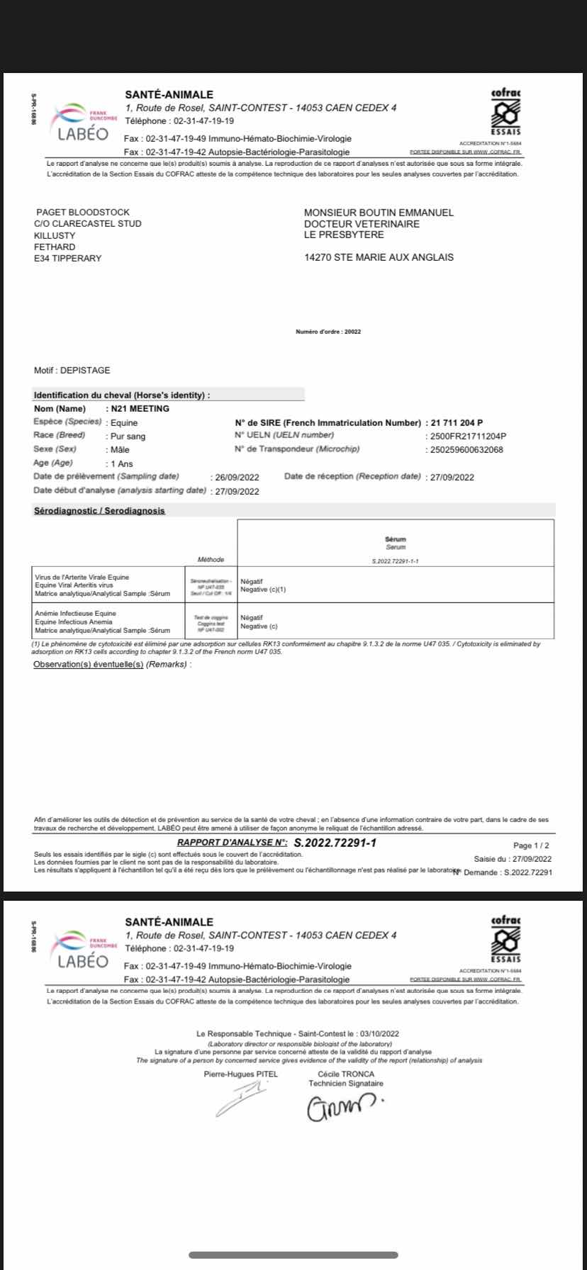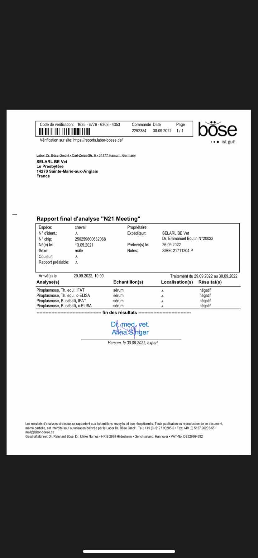 Piroplasmosis Certificate