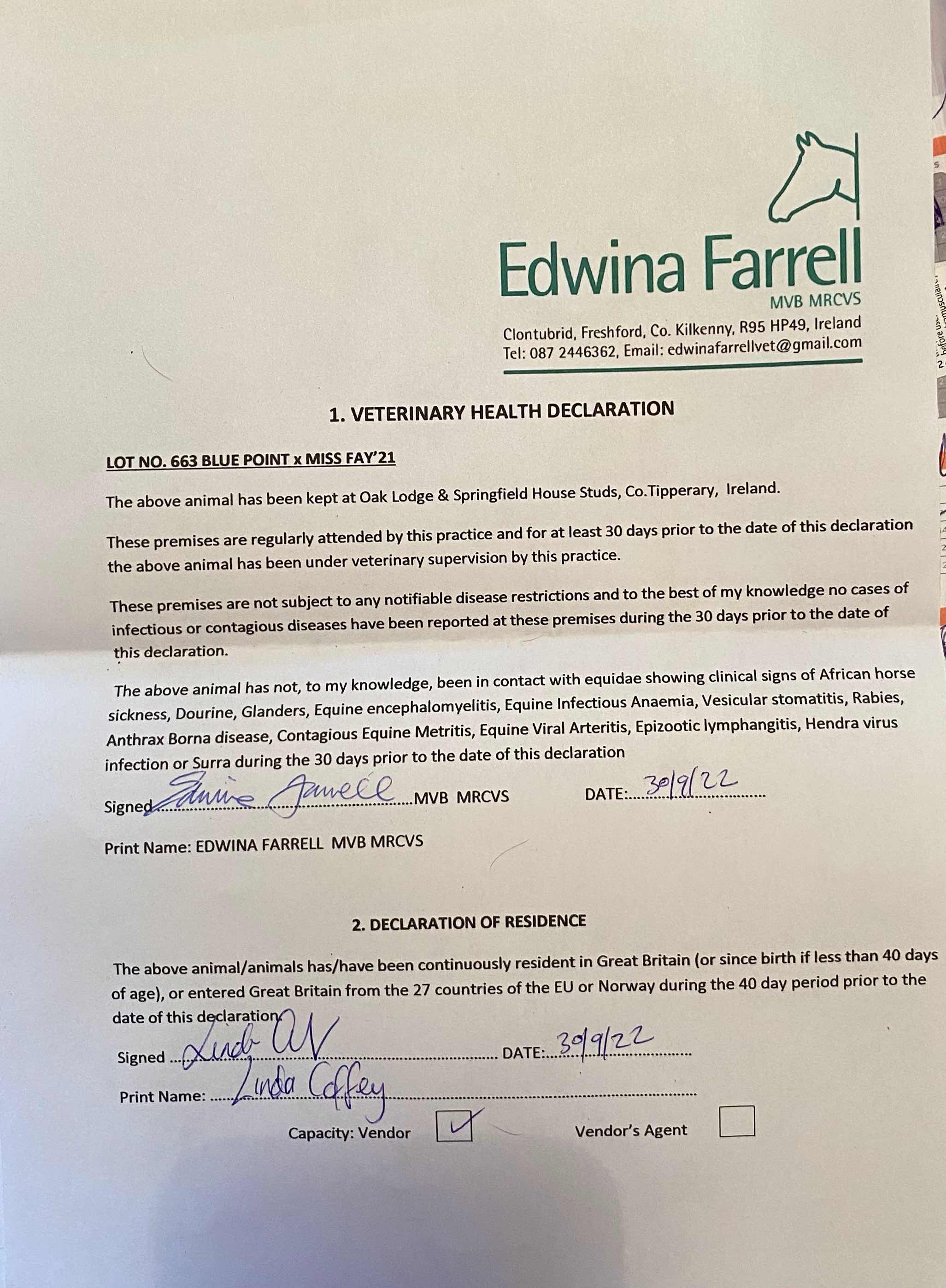 Consignor: Oak Lodge & Springfield House Stud, Ireland