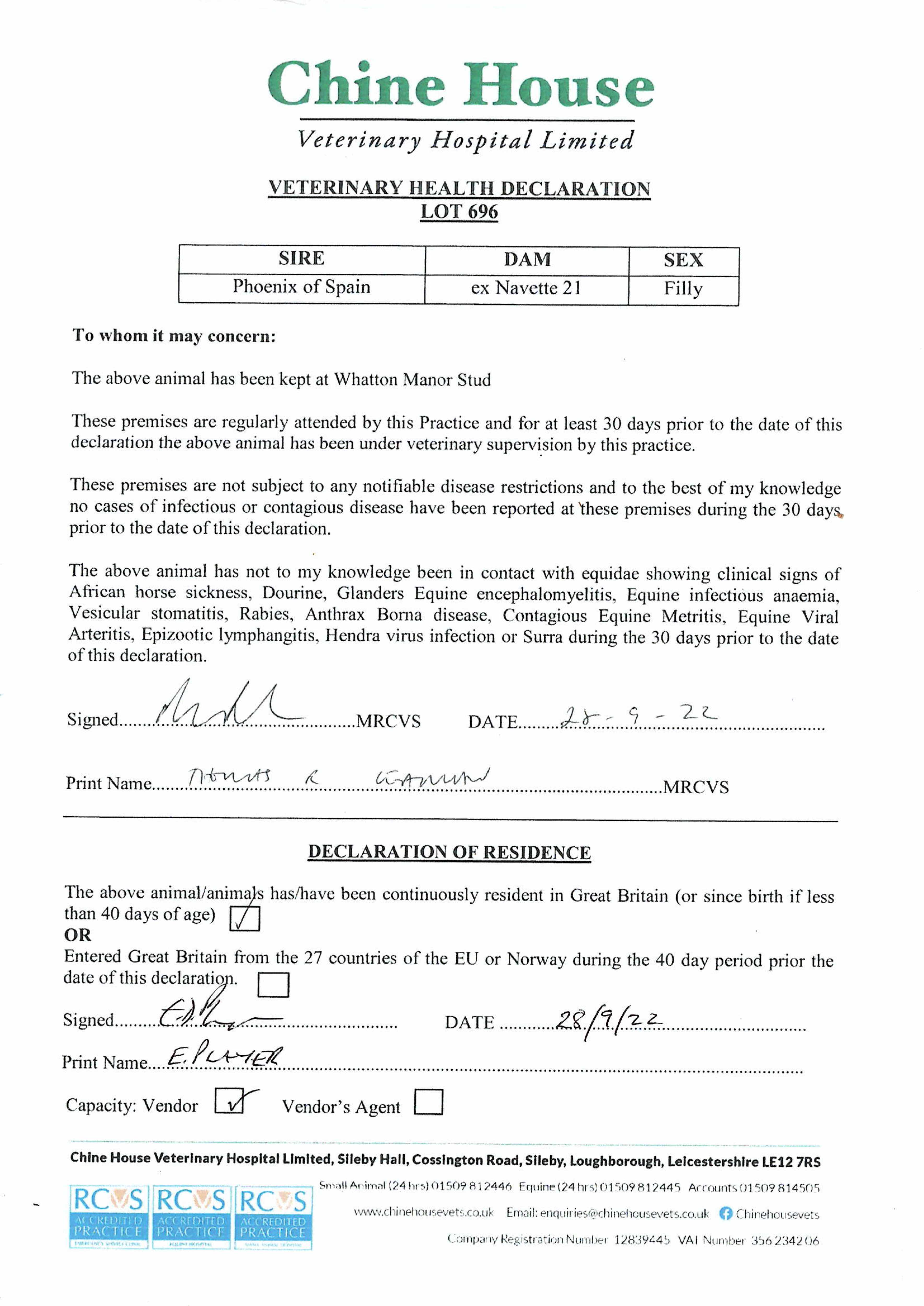 Consignor: Whatton Manor Stud