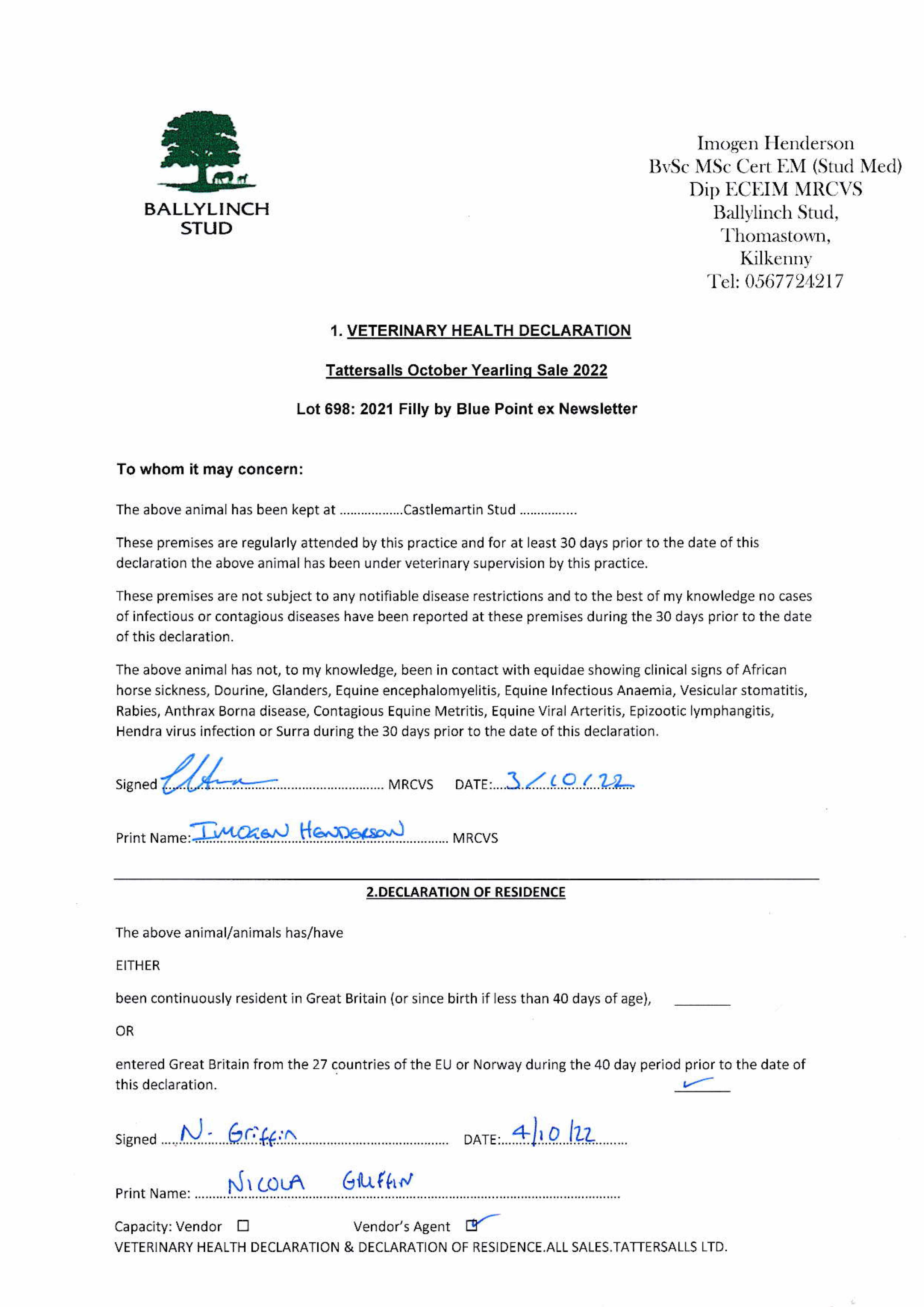 Consignor: Ballylinch Stud, Ireland