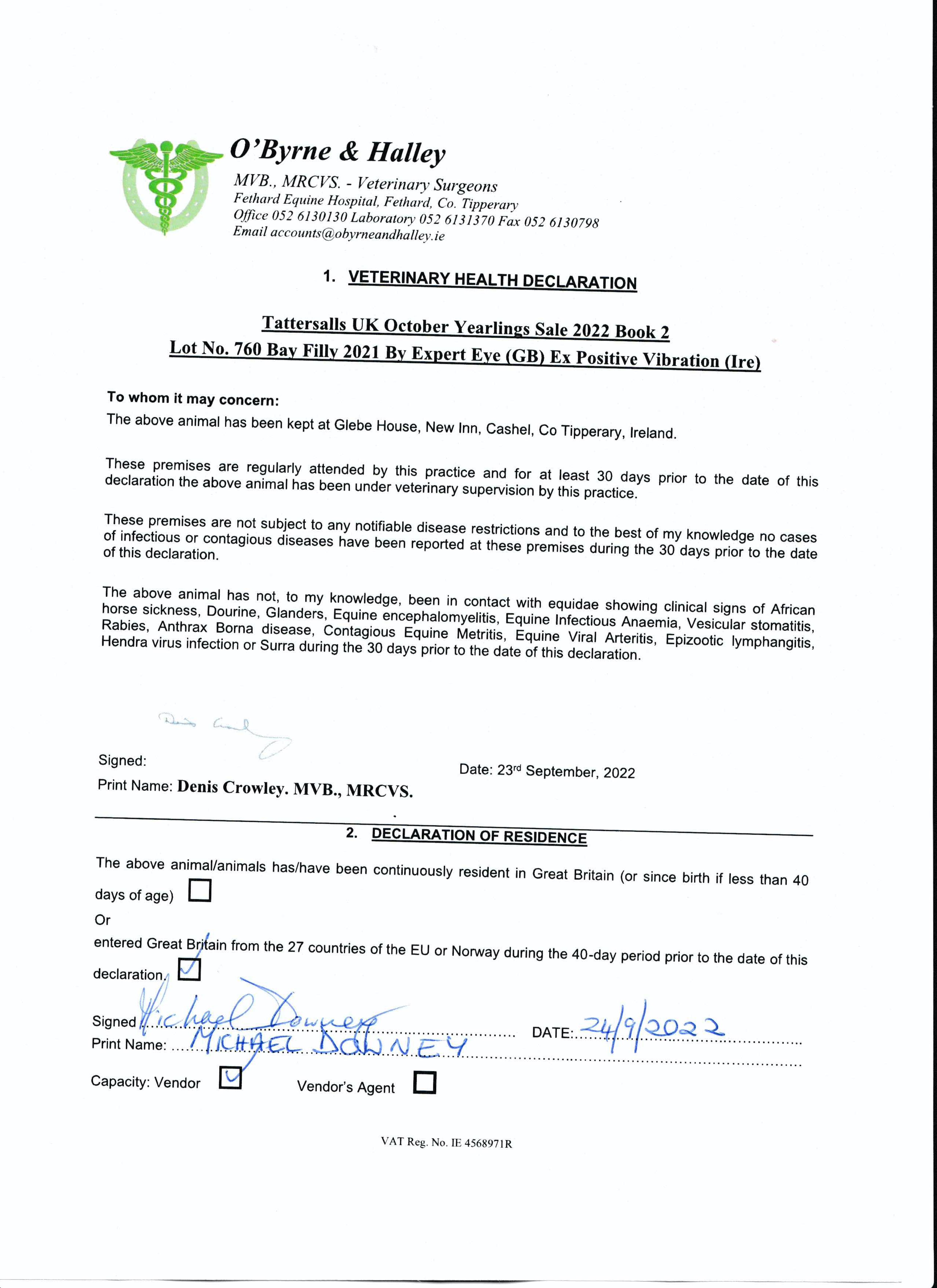 Consignor: Michael Downey, Agent