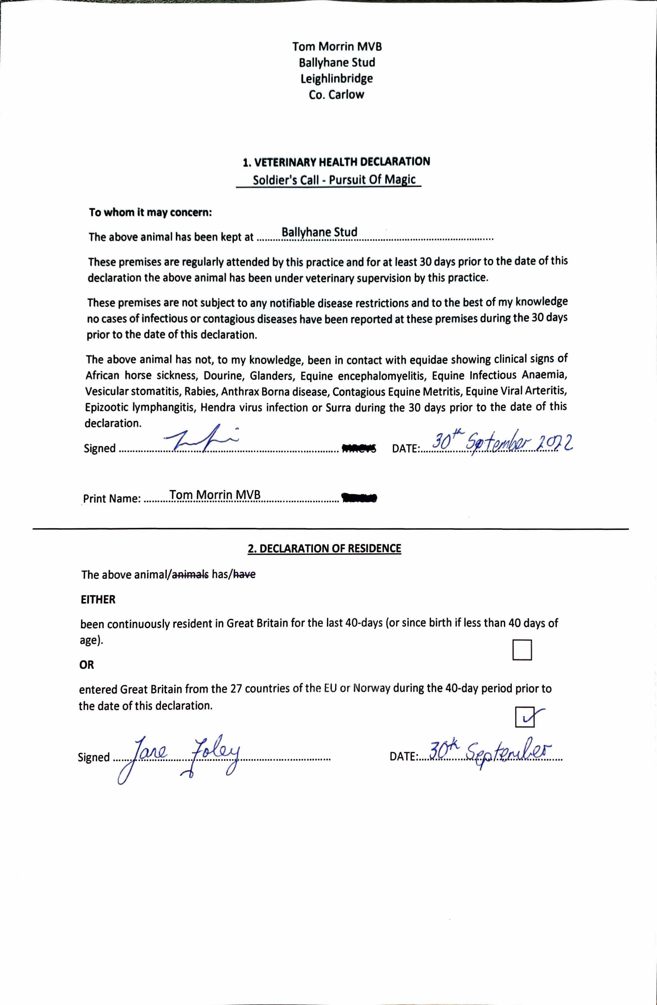 Consignor: Ballyhane, Ireland