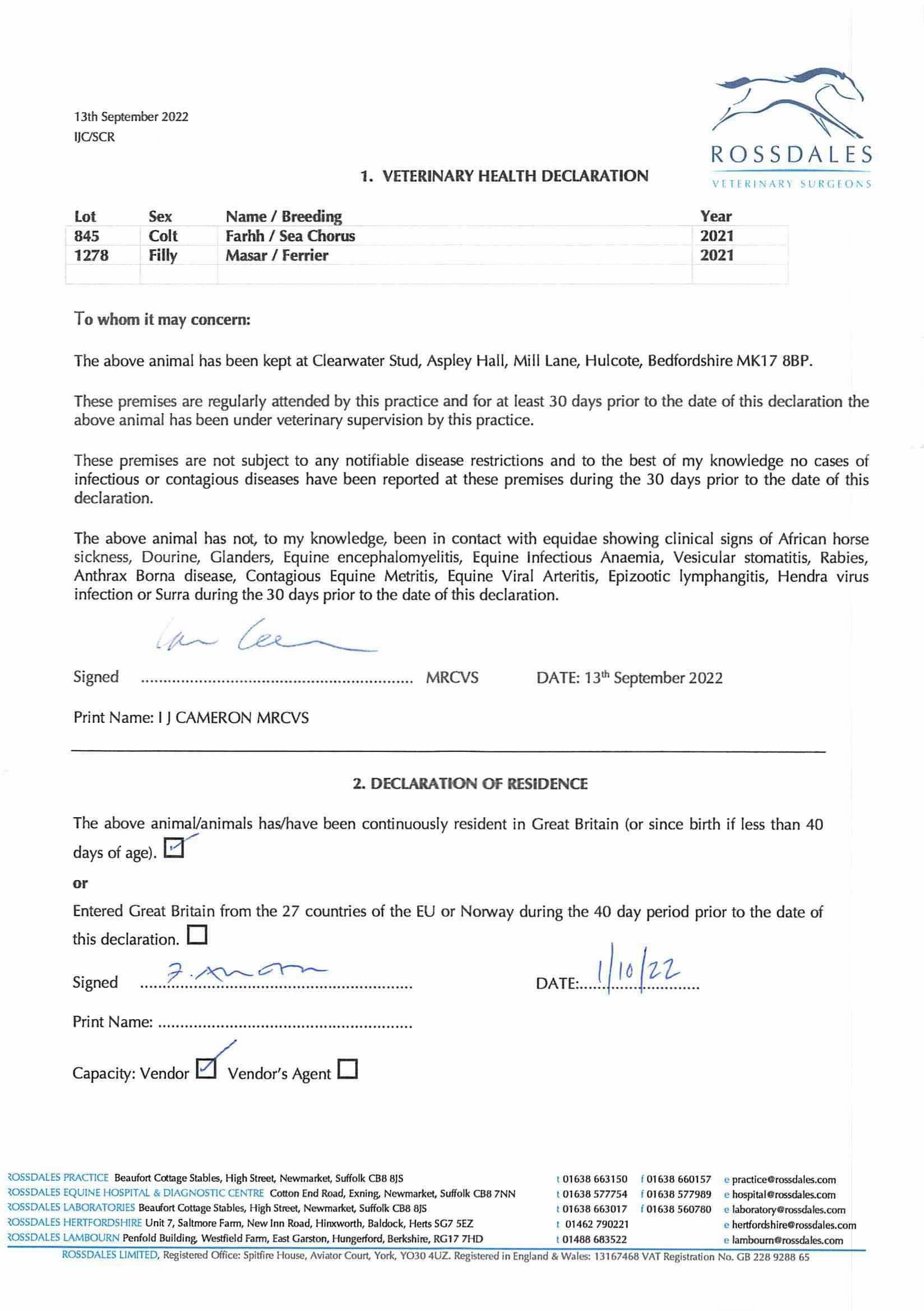 Consignor: Clearwater Stud