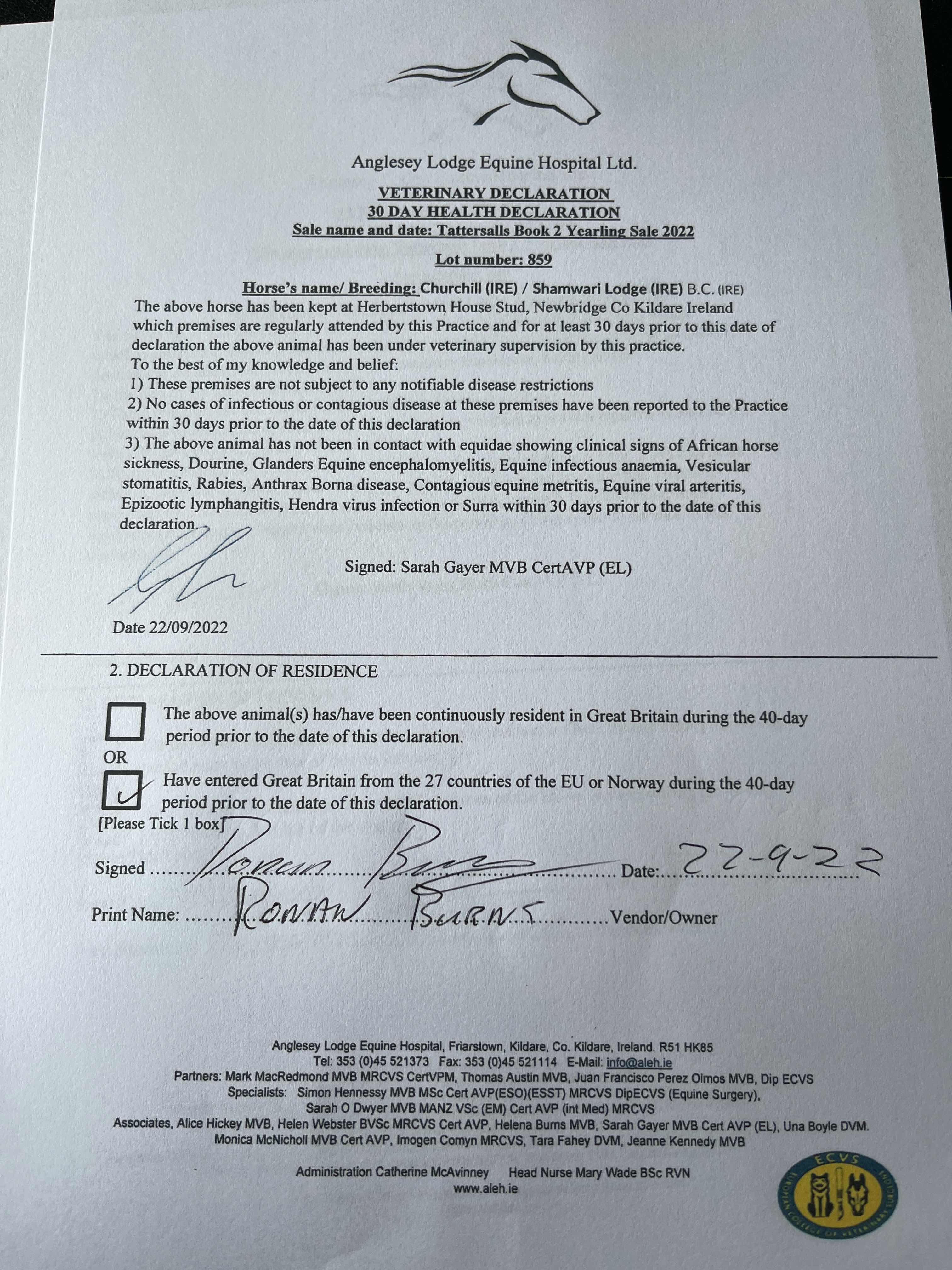 Consignor: Herbertstown House Stud (Co. Kildare), Ireland