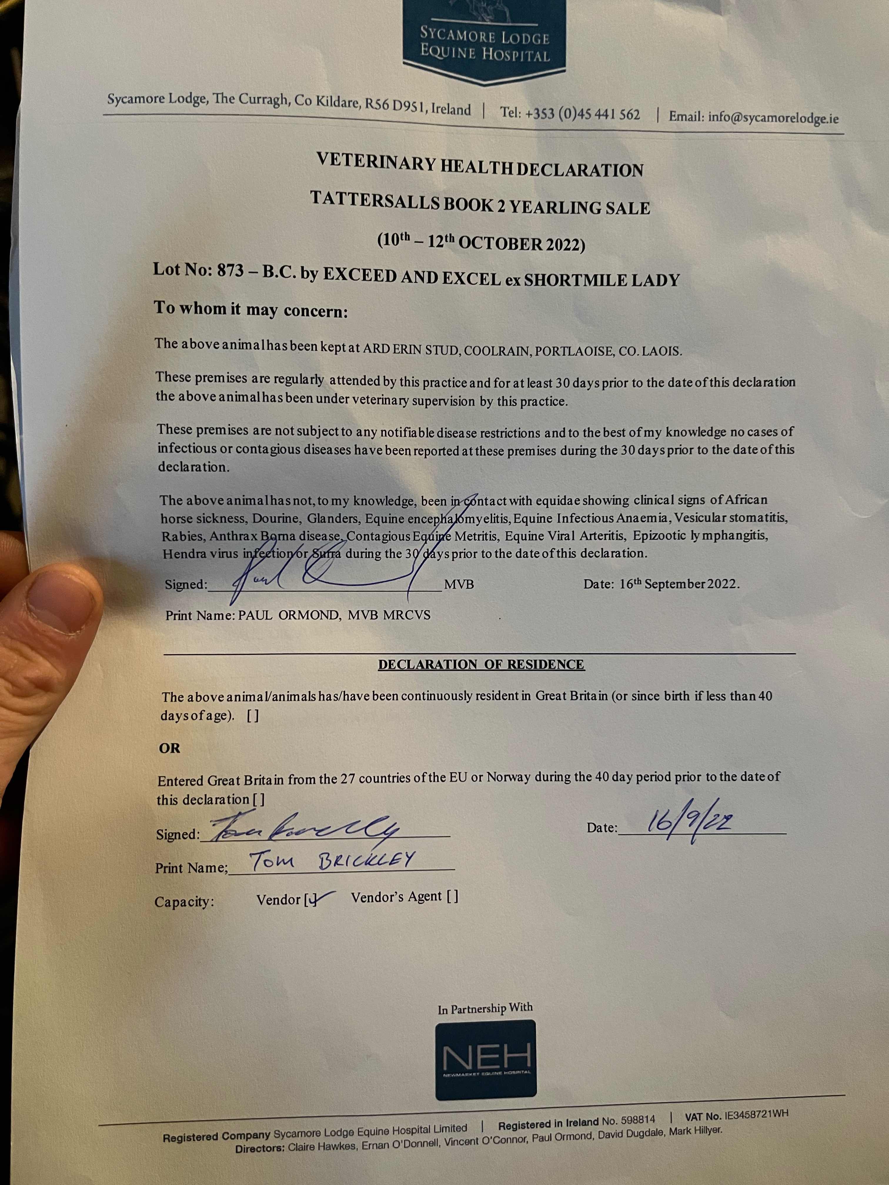 December Foal Sale 2024 lot 904 C. by Frankel (GB) 2024, Drumlin and Yellowford, Ireland=>Lot Not Sold 140,000 gns