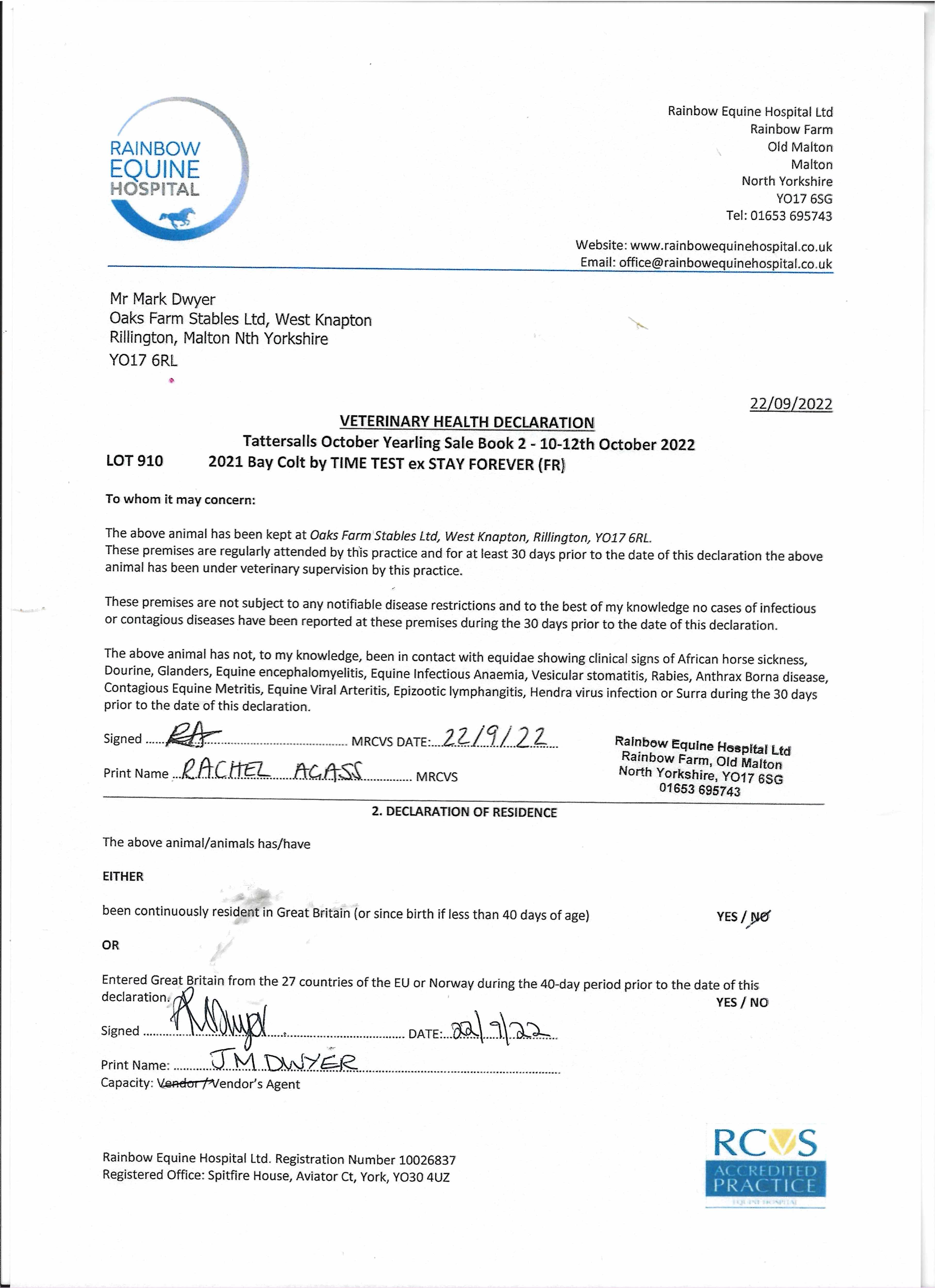 Consignor: Oaks Farm Stables