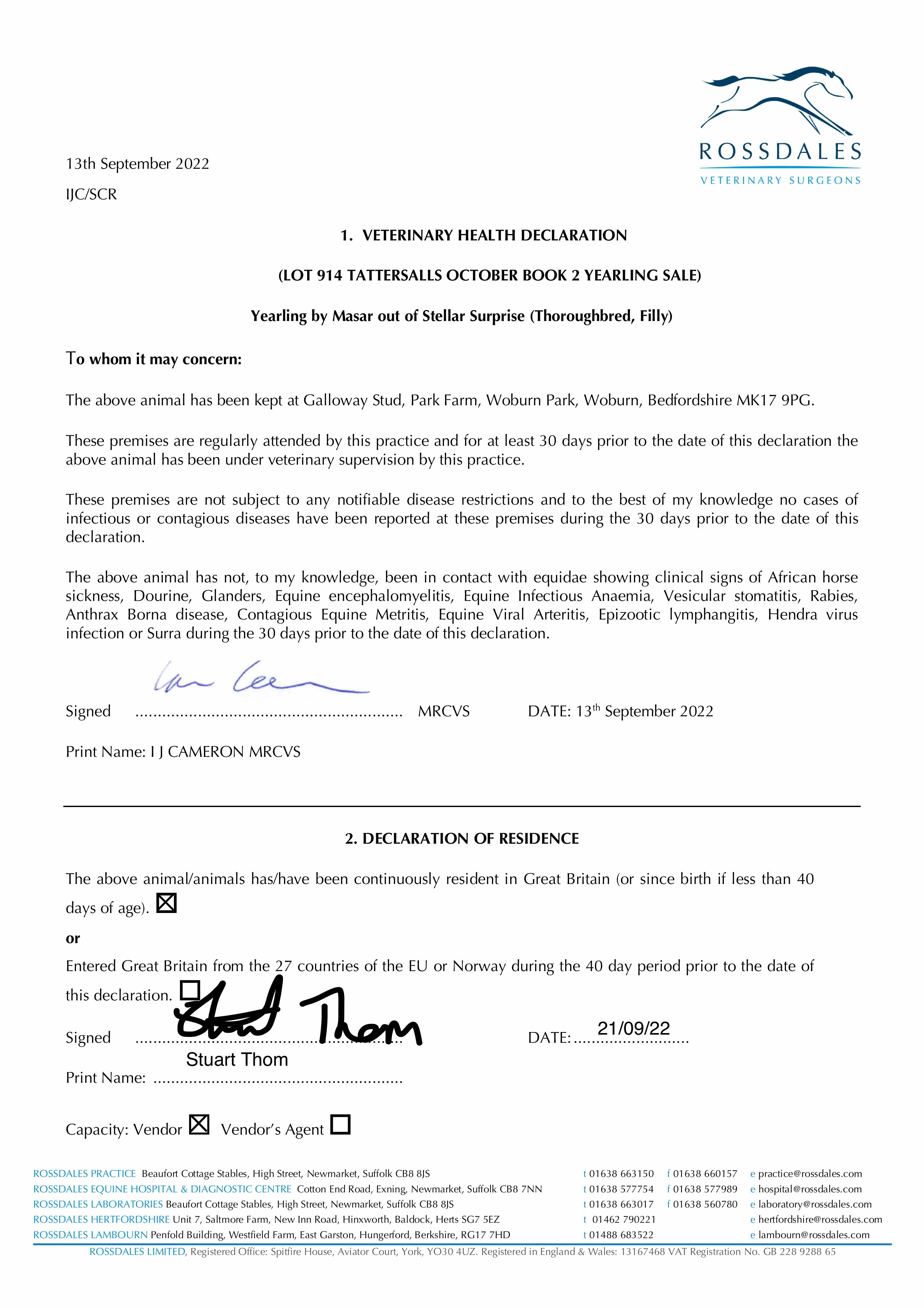 October Yearling Sale, Book 2 2021 lot 1018 F. by Gleneagles (IRE) 2020, Galloway Stud=>Vendor 45,000 gns