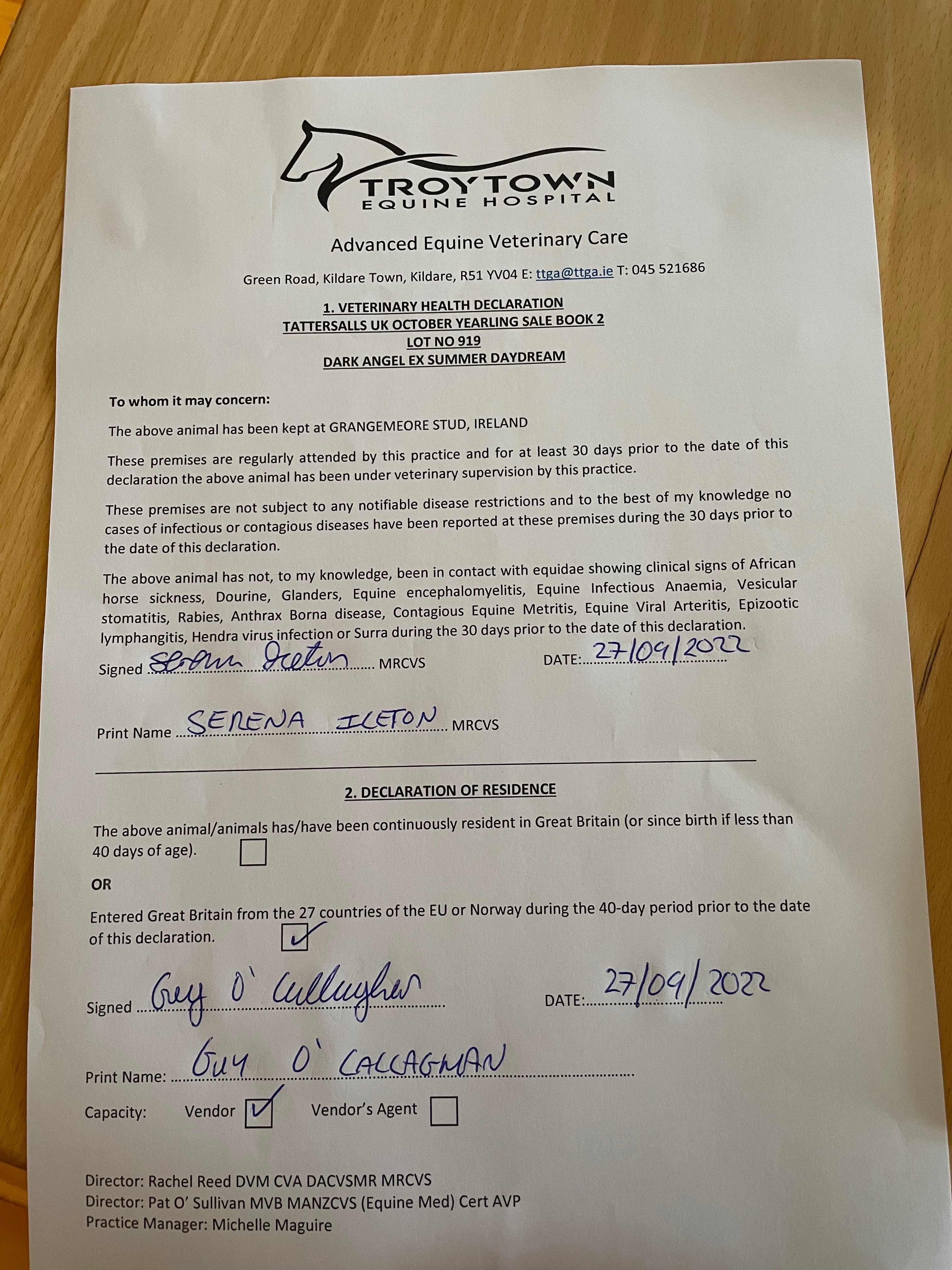 July Sale 2024 lot 147, Baroda Stud, Ireland=>Vendor 3,000 gns