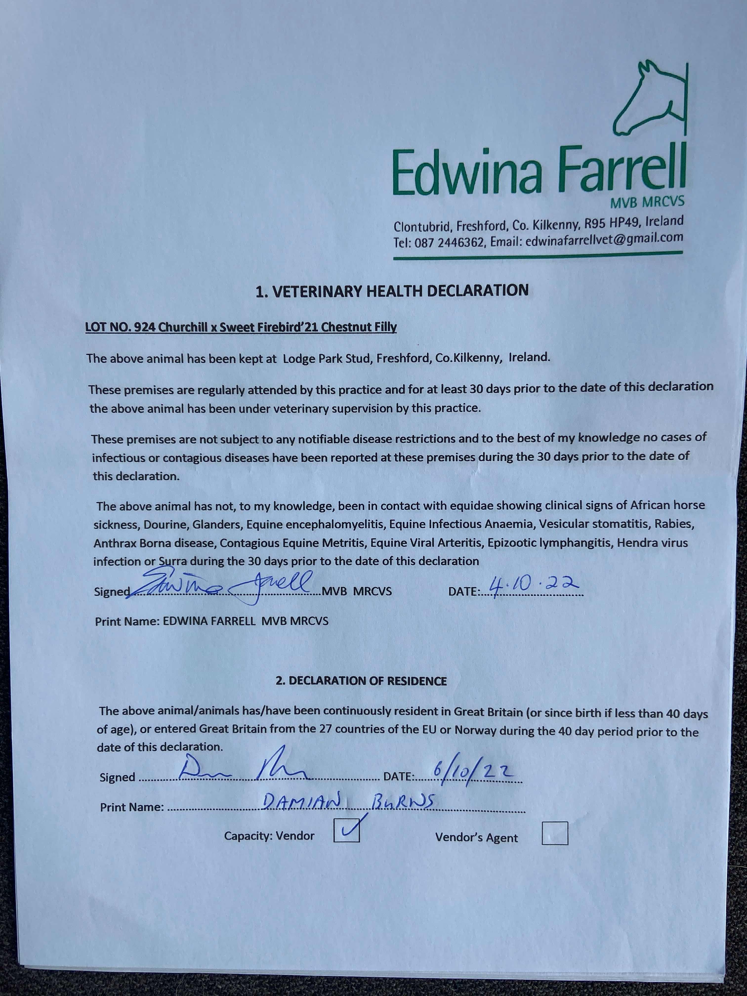 Consignor: Lodge Park Stud, Ireland