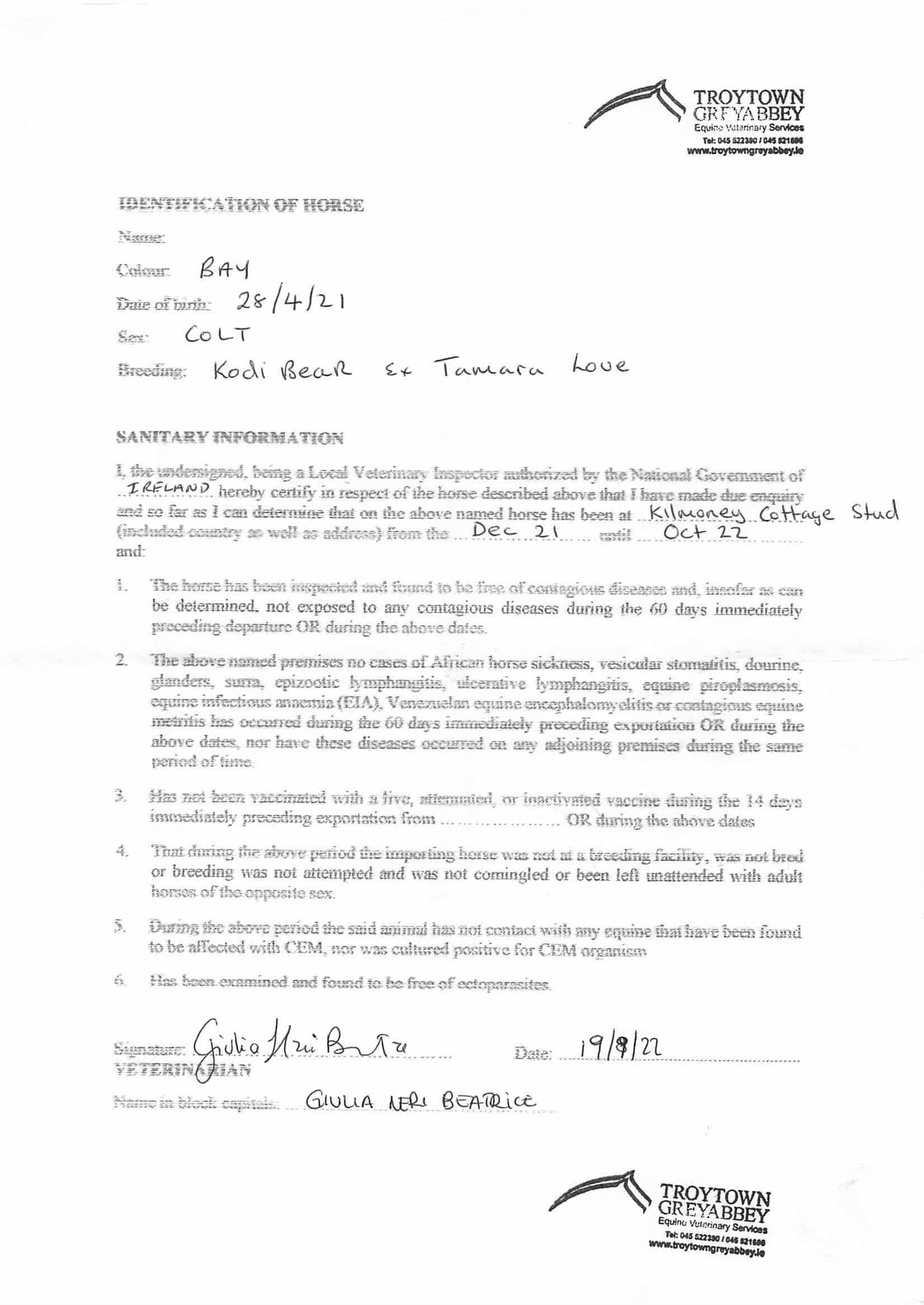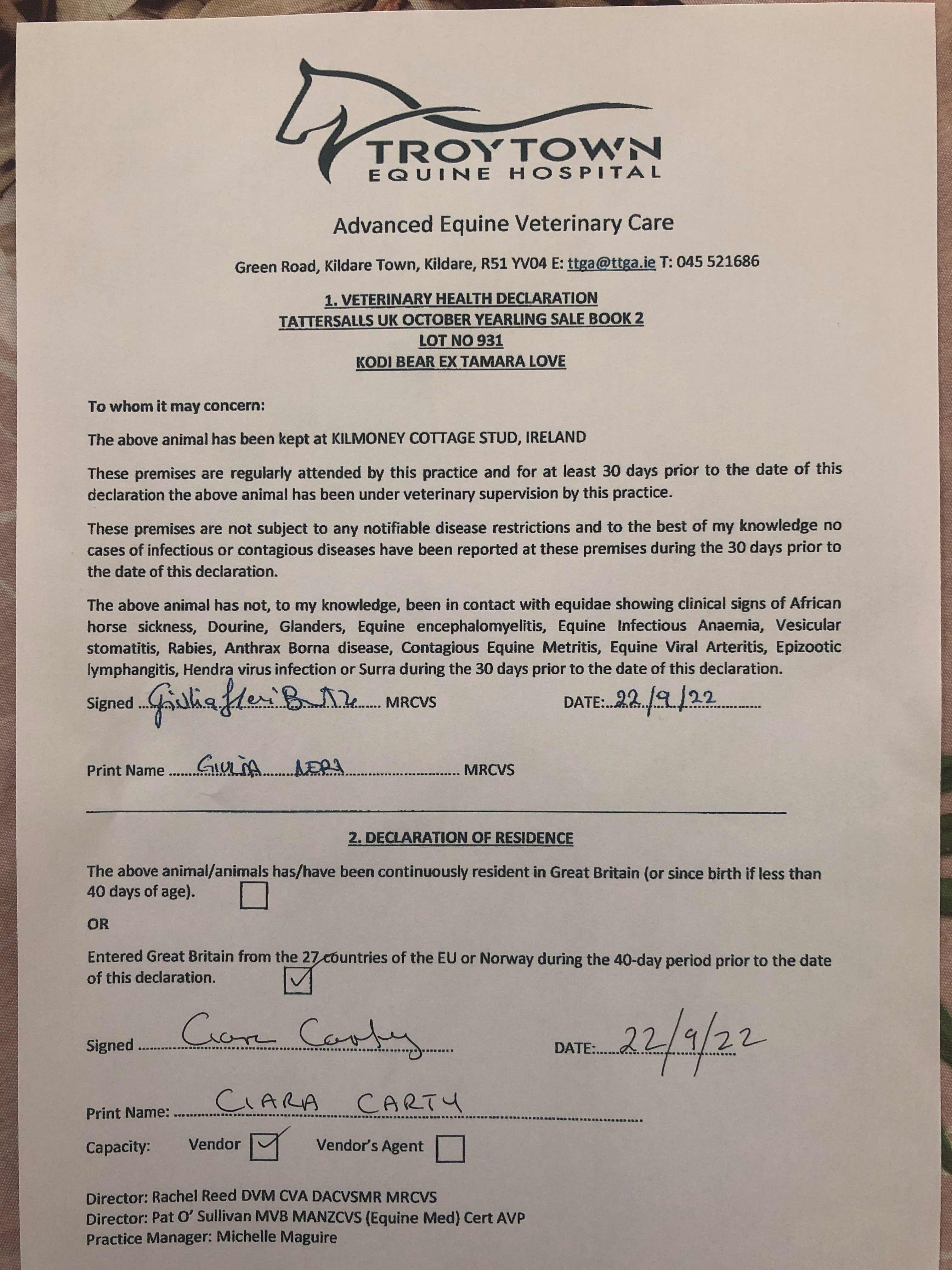 Consignor: Kilmoney Cottage Stud, Ireland