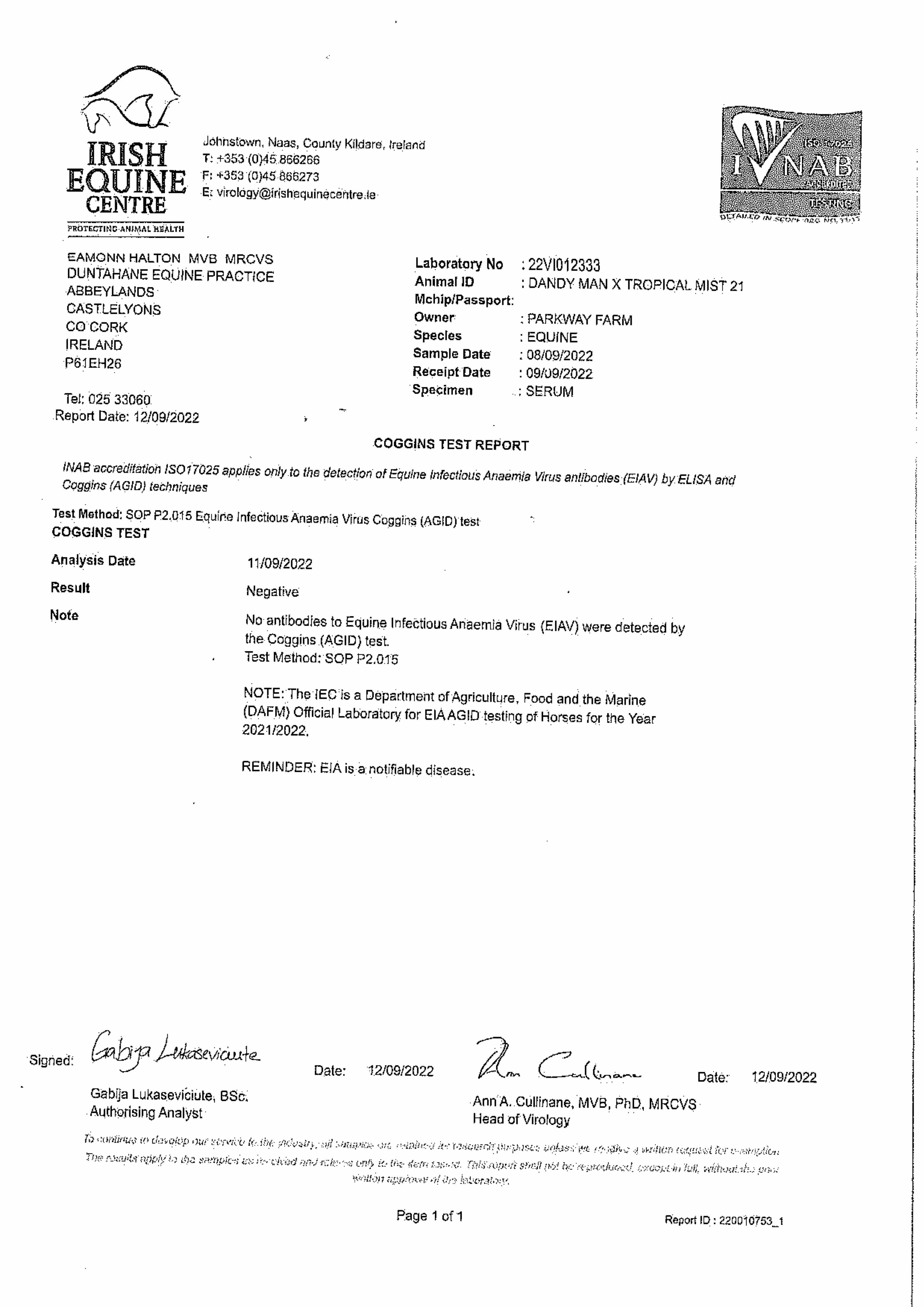 Consignor: Parkway Farm, Ireland
