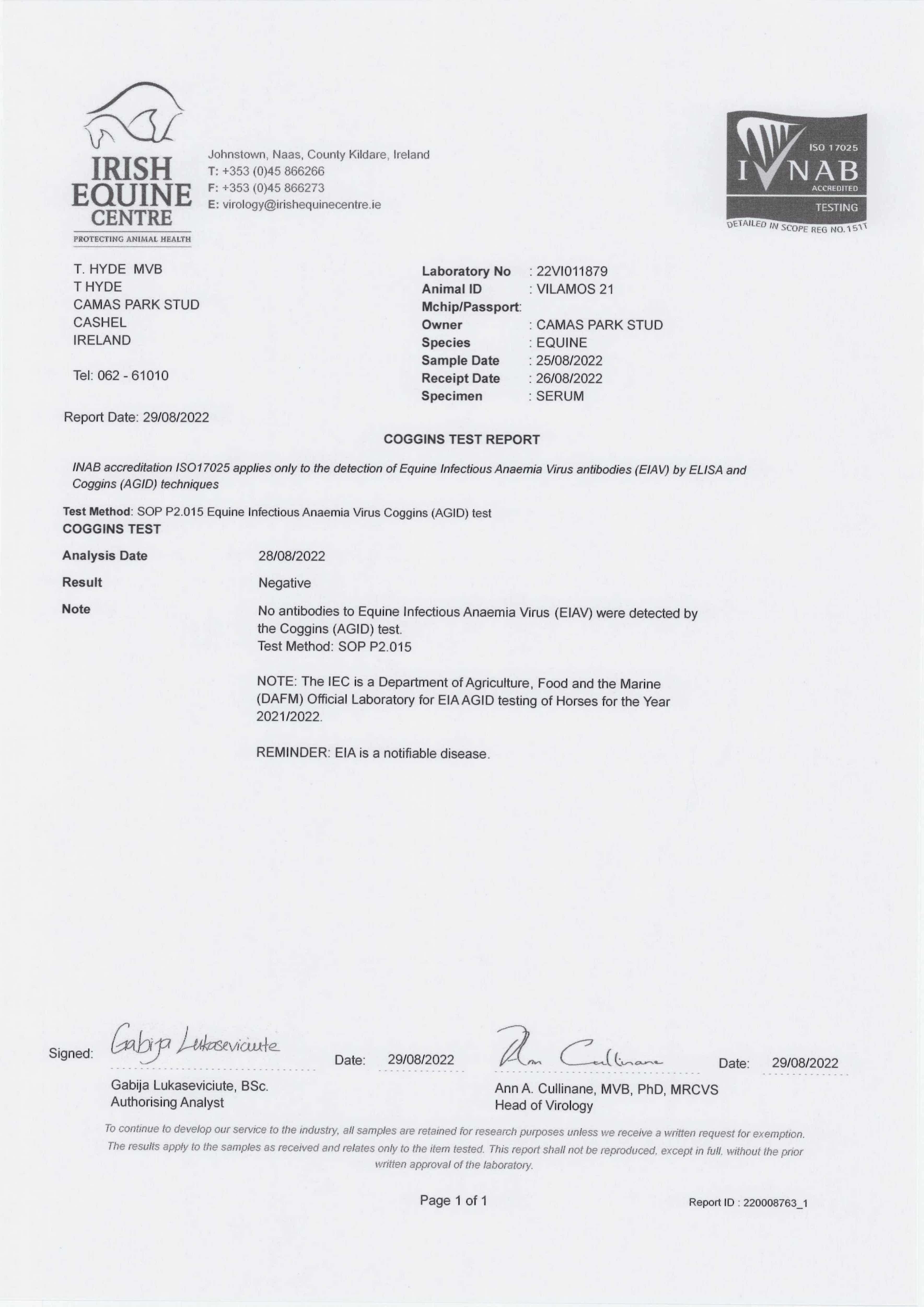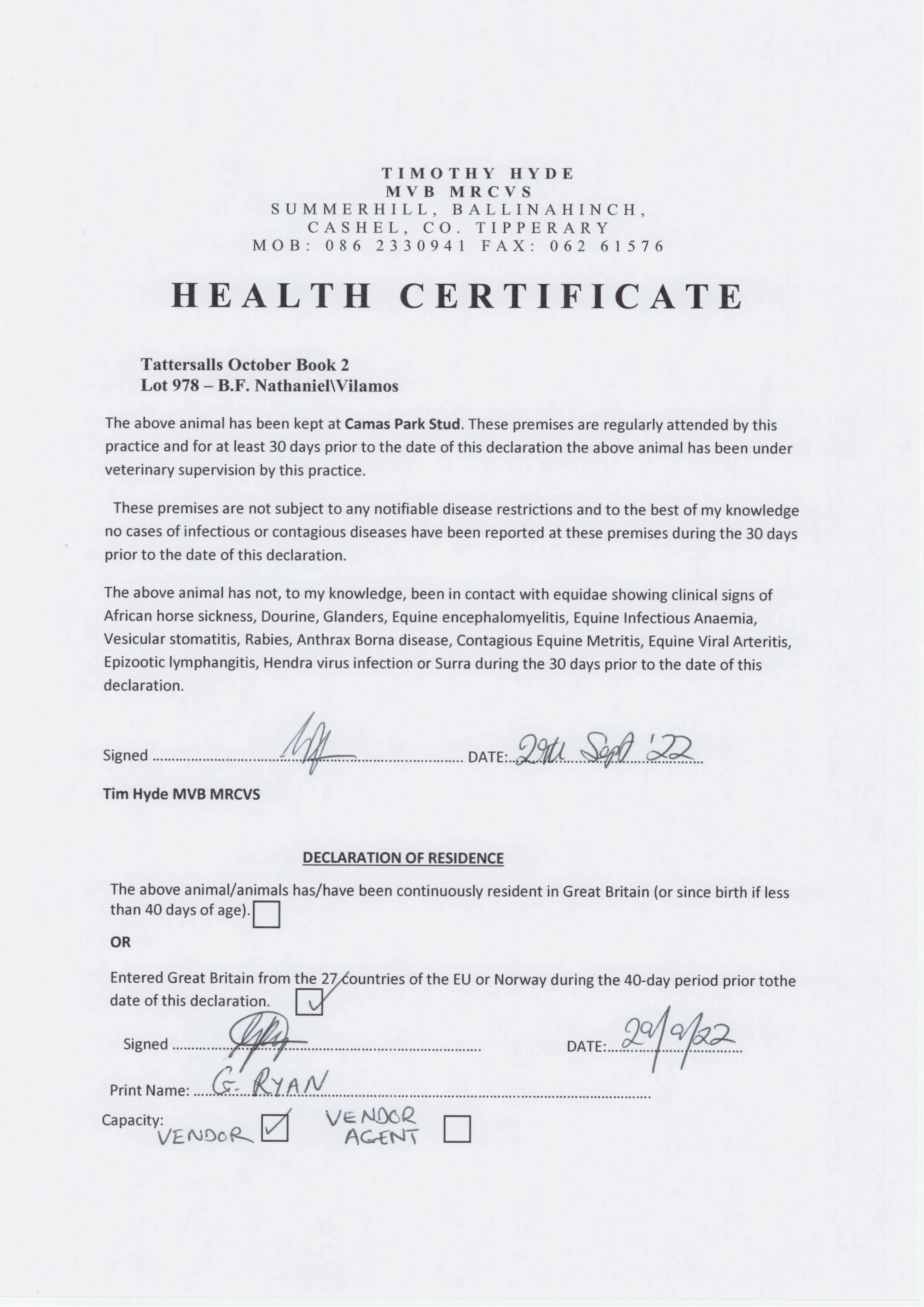 Consignor: Camas Park Stud, Ireland