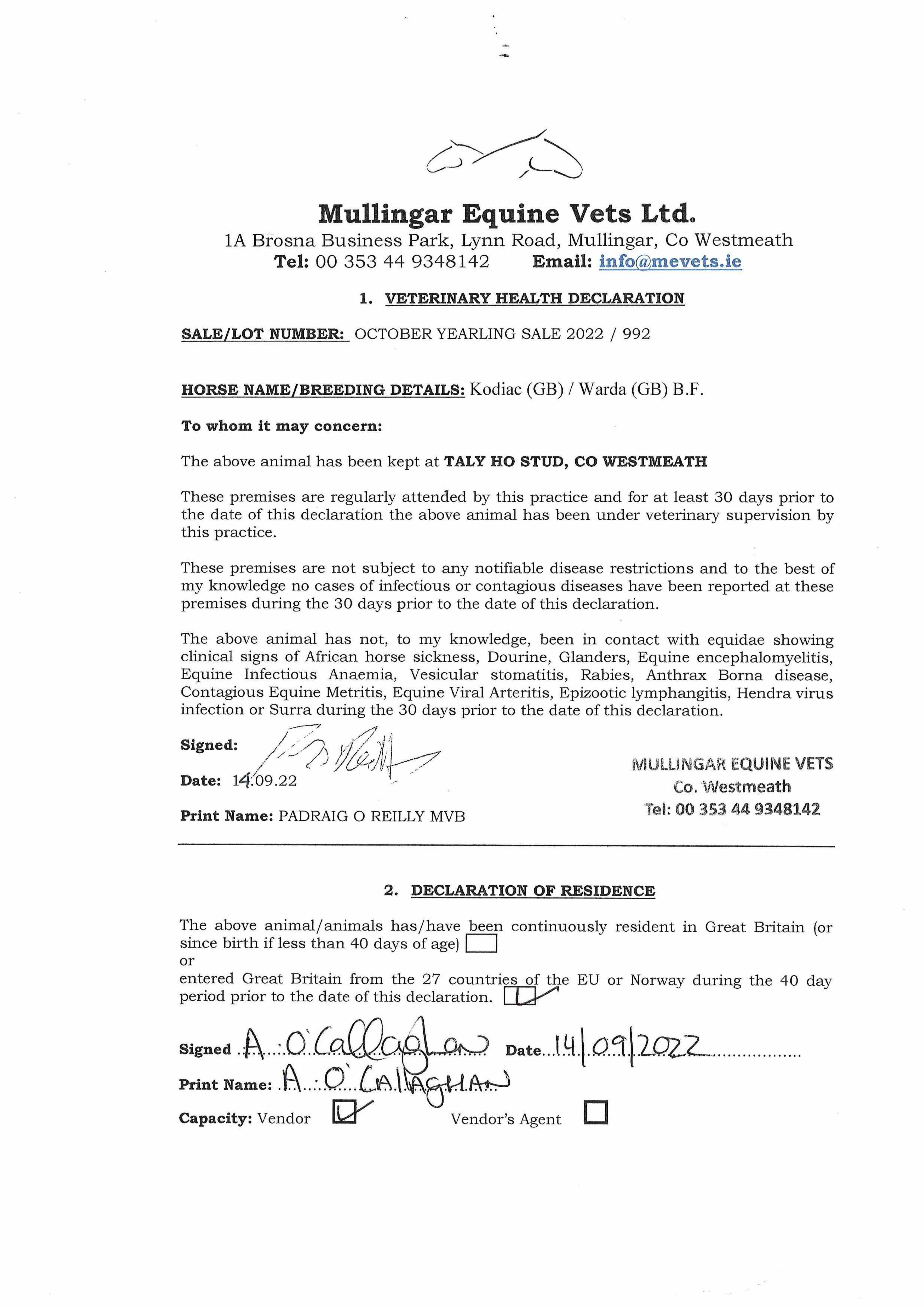 Consignor: Tally-Ho Stud, Ireland