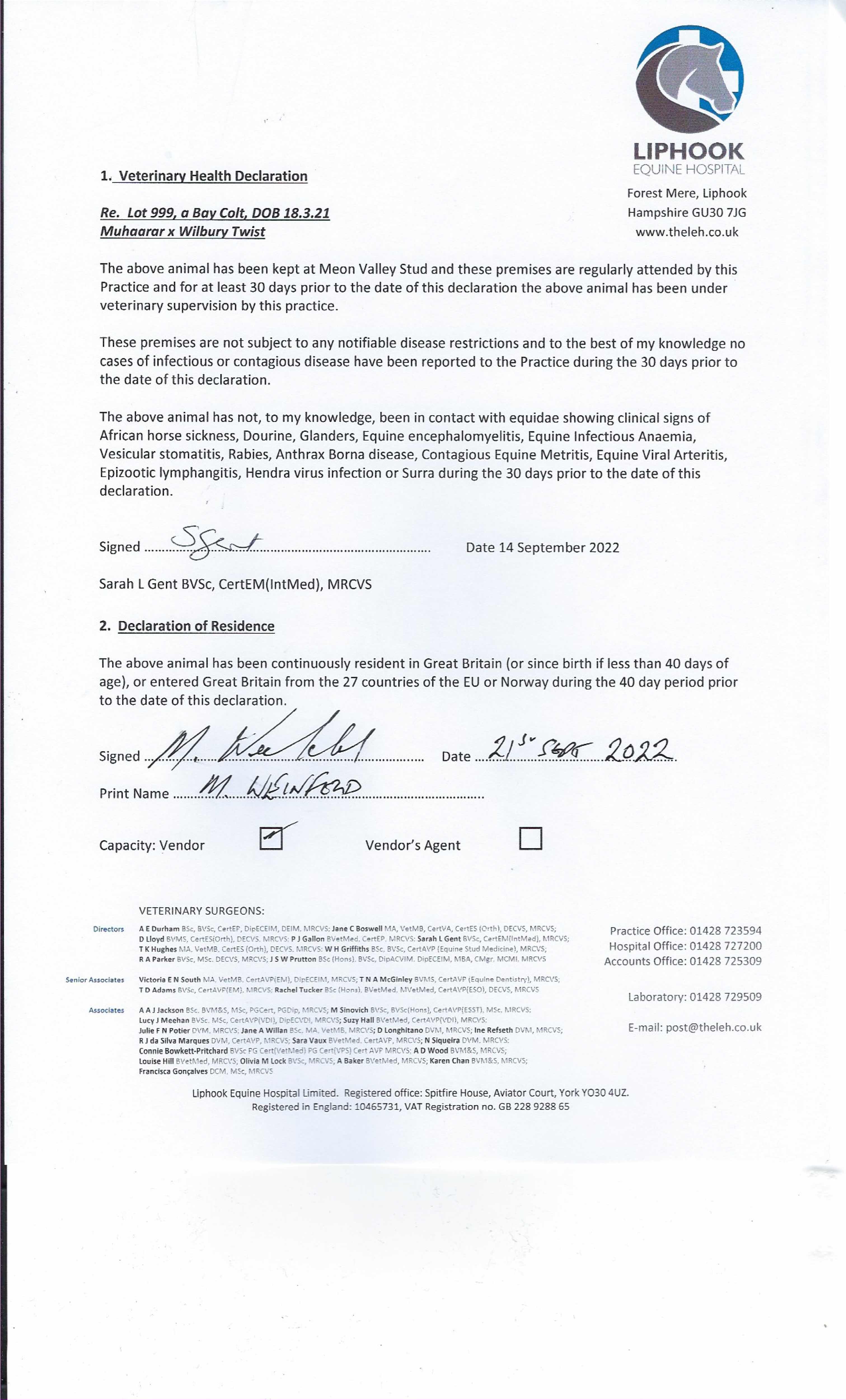 Consignor: Meon Valley Stud